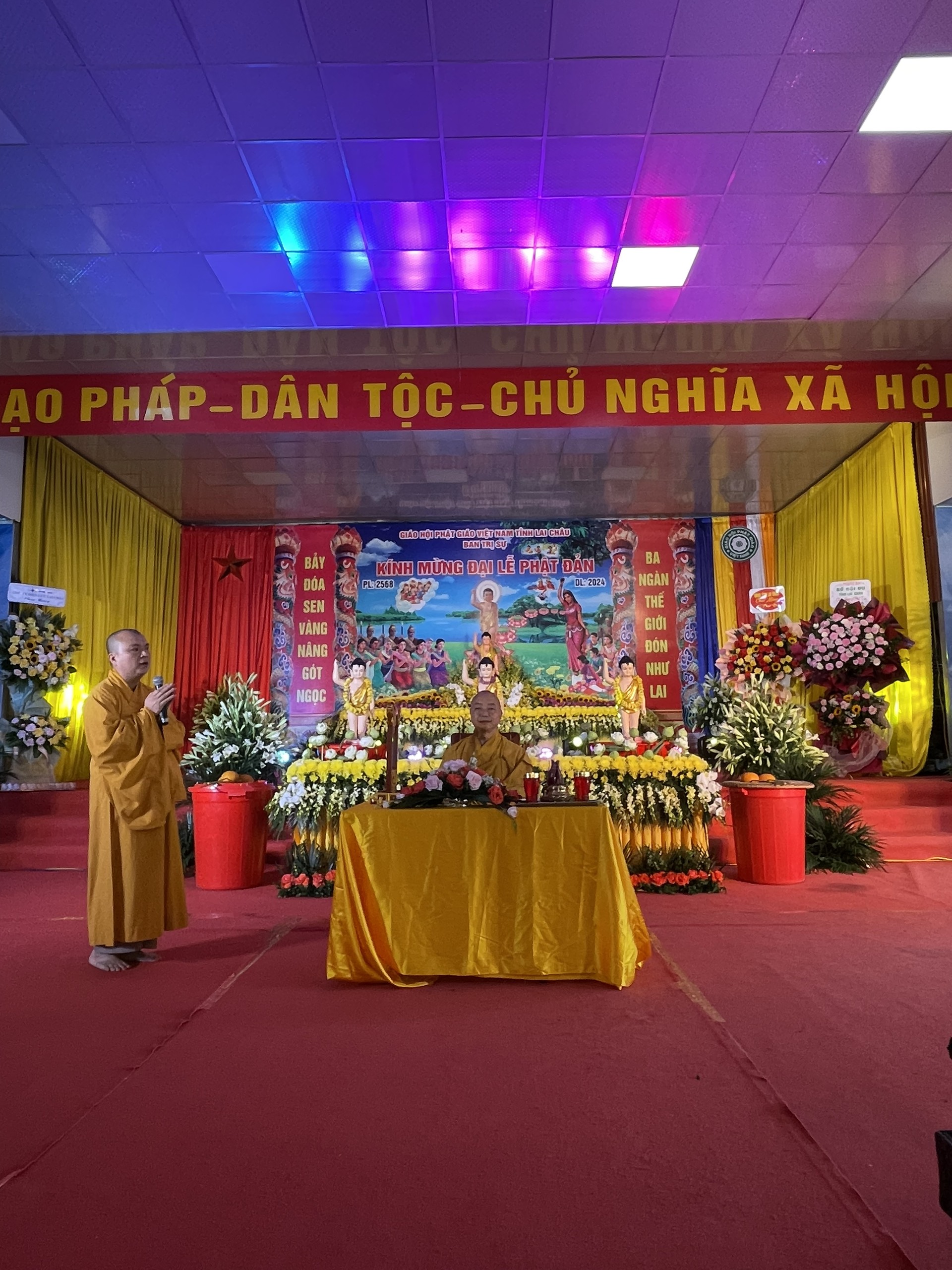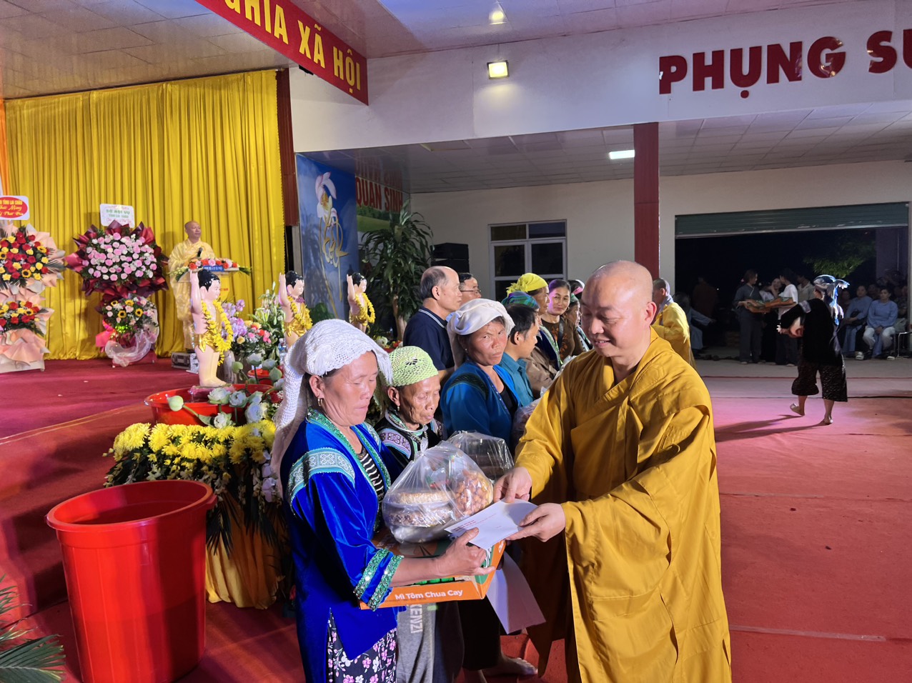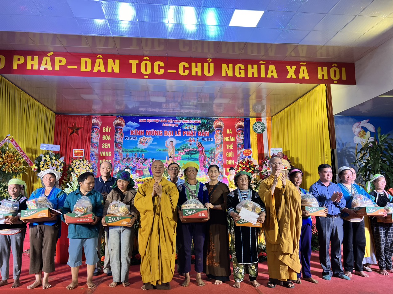 Được sự chỉ đạo của Trưởng lão Hoà thượng Thích Thanh Nhiễu – UVTT HĐCM, Phó Chủ tịch Thường trực HĐTS, Trưởng Ban Trị sự GHPGVN tỉnh; nhân Đại lễ trọng đại này, Ban Tổ chức đã quy y Tam Bảo cho gần 200 Phật tử là đồng bào Dân tộc trên địa bàn và có thời giảng về Ý nghĩa Phật đản sinh. Đồng thời trao 50 xuất quà an sinh phúc lợi cho đồng bào có hoàn cảnh khó khăn của Thành phố Lai Châu, trị giá 50 triệu đồng.