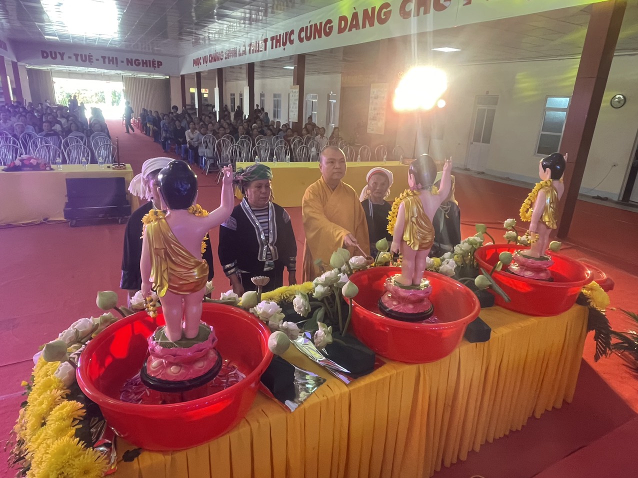 Dịp này, Ban Tổ chức Đại lễ đón nhận nhiều lẵng hoa, phần quà dâng lên cúng dàng Đức Từ phụ và chúc mừng động viên Tăng Ni – Phật tử tỉnh nhà. Đại lễ được Thượng tọa Thích Minh Tuân cử hành nghi lễ mộc dục, rưới nước thiêng lên kim thân Đức Từ phụ, với âm ba trầm hùng linh thiêng của tiếng niệm Phật Thích Ca, vang vọng núi rừng Tây Bắc. Đại lễ khép lại với lời cảm tạ của Đại đức Thích Đạo Ngộ – Phó Ban Tổ chức.