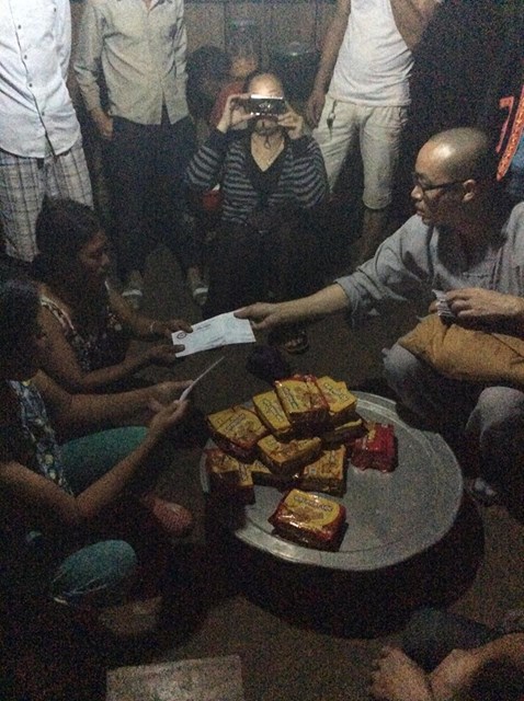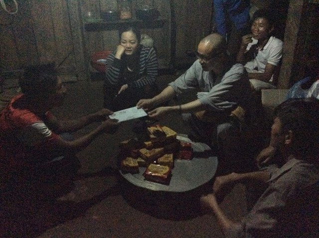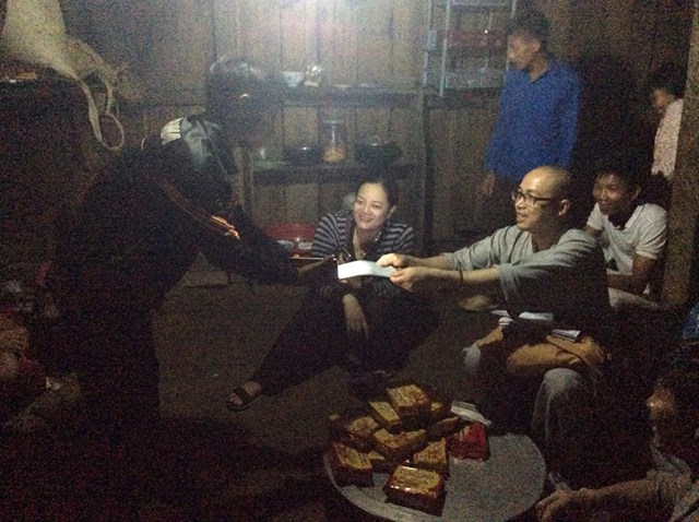 Vượt qua chặng đường hơn 400km, có nhiều đoạn đường bị sạt lở, các thành viên trong đoàn phải xuống đẩy xe ô tô, cuối cùng thì đoàn từ thiện chùa Hang – Đồ Sơn cũng đã tới được huyện Mường Tè, tỉnh Lai Châu. Đoàn từ thiện đã đi sâu vào tận 5 bản của xã Tá Bạ, xã Nậm Xả để trao quà tới tận tay cho hơn 350 hộ dân đang sinh sống tại đây, với tổng số tiền từ thiện, cùng quà bánh, thuốc men, mỳ ăn liền, quần áo,… lên tới hơn 250 triệu đồng, gia đình nào thiệt hại nặng thì đoàn sẽ hỗ trợ 3 triệu đồng, 2 triệu đồng, 1 triệu đồng, hay vài trăm ngàn đồng để bà con vượt qua được khó khăn trước mắt, có gạo để nấu cơm, có mỳ để ăn, vượt qua cơn đói khát đang hoành hành.