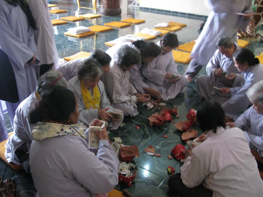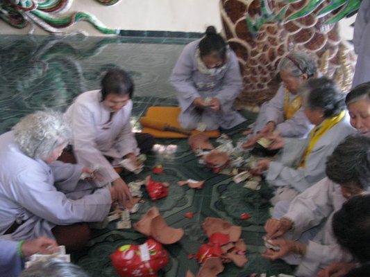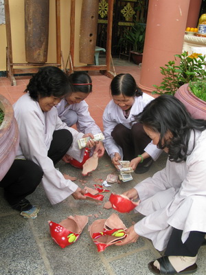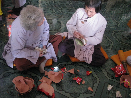 Hưởng ứng tâm nguyện của TT viện chủ, đạo tràng Bát Quan trai bổn tự đã tổ chức phát động phong trào nuôi heo đất góp tiền cúng dường đúc đại hồng chung và sau sáu tháng triển khai phật sự, sáng ngày 17/11/ Tân Mão đạo tràng đã làm lễ khui heo đất đợt một với số tiền thu được trên 200 triệu đồng.