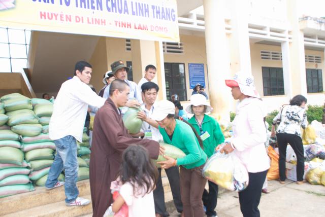 Sáng ngày 11/11/2012 vừa qua, Ban Từ Thiện chùa Linh Thắng huyện Di Linh đã kết hợp với bà con Phật tử TP Hồ Chí Minh đến thăm và tặng 230 phần quà, mỗi phần gồm : 10 kg gạo, mì gói, bột ngọt, dầu ăn, chăn mền cùng nhiều vật phẩm khác trị giá 300.000 đồng một phần cho bà con dân tộc thiểu số xã Sơn Điền – Di Linh.
