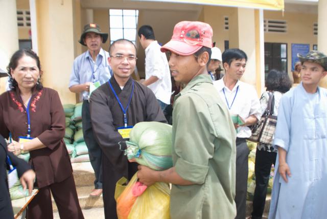 Món quà hôm nay đoàn mang đến tuy không lớn nhưng đây là tấm lòng, là tình cảm của Tăng Ni, Phật tử huyện Di Linh và TP Hồ Chí Minh gởi đến bà con và mong rằng bà con ta cố gắng vượt khó vươn lên , định canh, định cư ổn định cuộc sống trong tình thương yêu, sẻ chia của toàn xã hội .