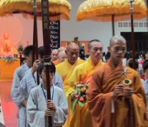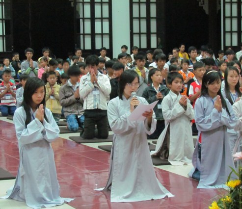 Buổi lễ được thêm phần trang nghiêm thanh tịnh của 15 phút chú tâm của tất cả tu sinh cùng lắng lòng, đồng thanh niệm danh hiệu “Bồ Tát Quán Thế Âm ”.