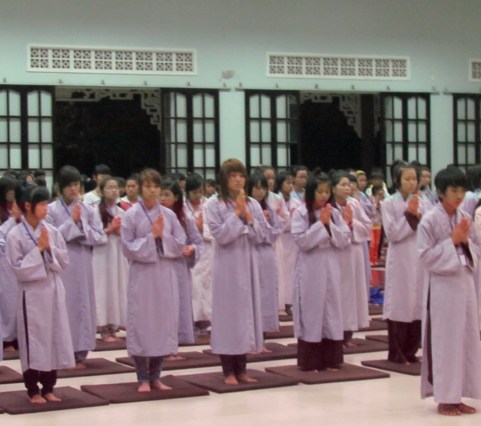Khi tiếng chuông báo kết thúc giờ tịnh tọa và đã xong phần nghi thức hồi hướng, những tràng vỗ tay của các tu sinh vang lên để tán thán tinh thần tu học của chính mình.