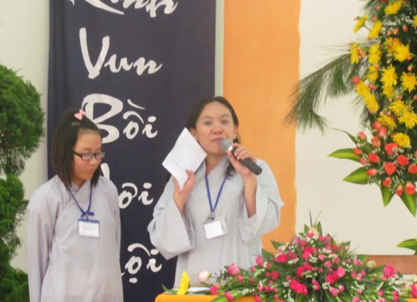 Đáp lại tâm nguyện của BTC là bài phát biểu cảm tưởng về lòng biết ơn, trân quý và quyết chí gìn giữ, tinh tấn trong 7 ngày tu học của đại diện tu sinh.