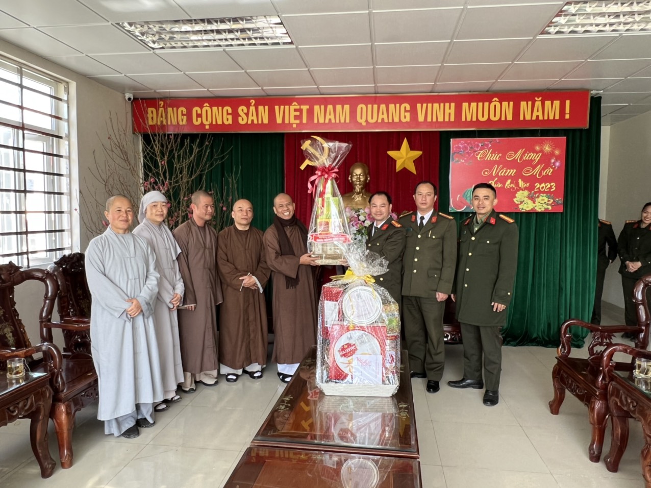 Tại các cơ quan chức năng và các sở, ban ngành, lãnh đạo các ban cũng đã sơ qua tình hình kinh tế, chính trị của thành phố trong năm vừa qua và chúc cho Phật giáo thành phố ngày càng lớn mạnh, đạt được mục tiêu đã đề ra và đón tết cổ truyền Quý Mão – 2023 an toàn, tiết kiệm, ý nghĩa.