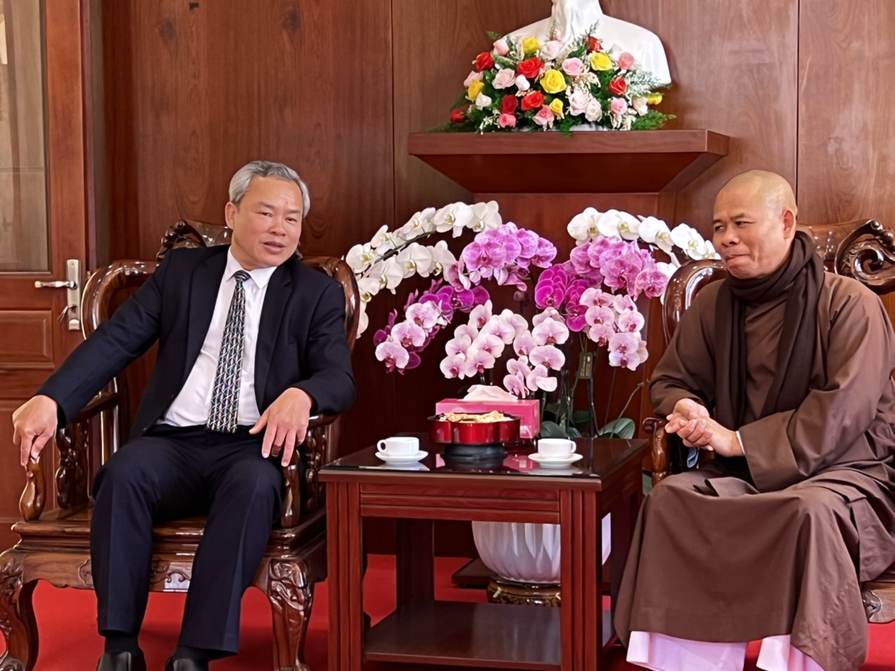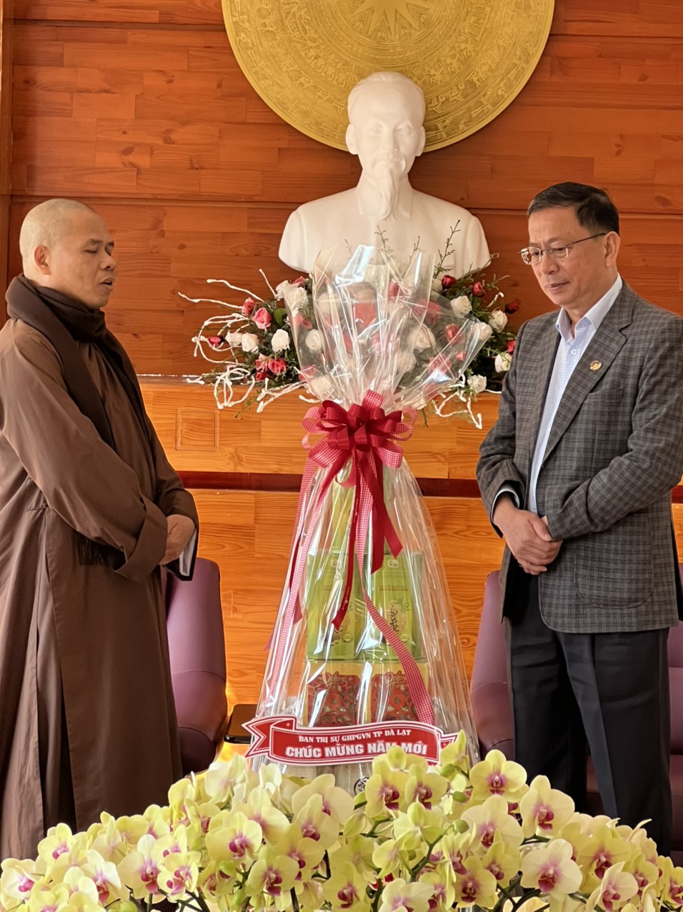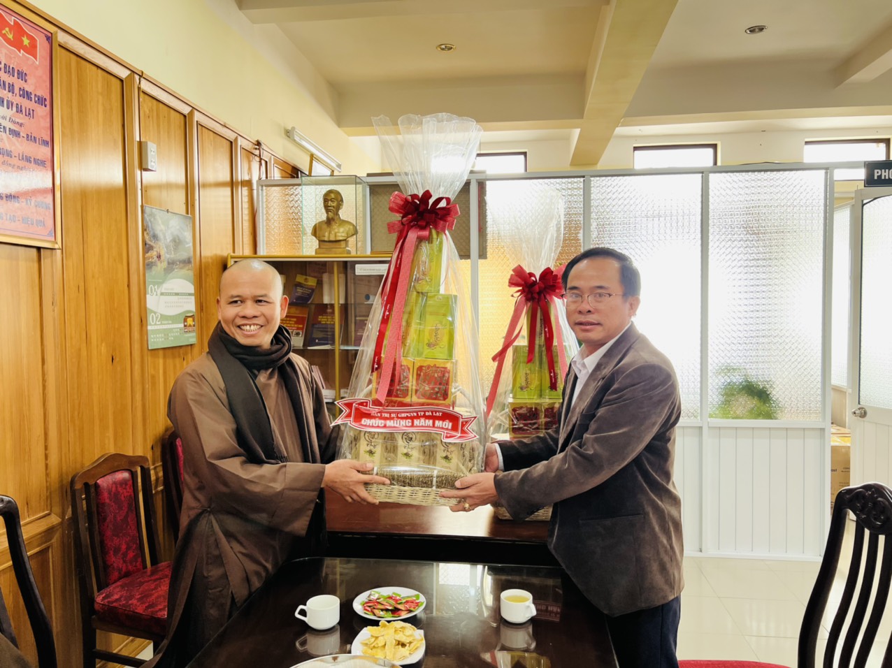 Sáng nay ngày 12/01/2023( Nhằm ngày 21 tháng Chạp năm Nhâm Dần), Ban trị sự GHPGVN thành phố Đà Lạt do Thượng toạ Thích Vạn Trí – Trưởng Ban trị sự GHPGVN thành phố Đà Lạt làm trưởng đoàn đã tới thăm và chúc tết các sở, ban ngành của thành phố. Tháp tùng thượng toạ trưởng ban còn có sự hiện diện của Chư tôn đức Uỷ viên thường trực Ban trị sự GHPGVN thành phố.