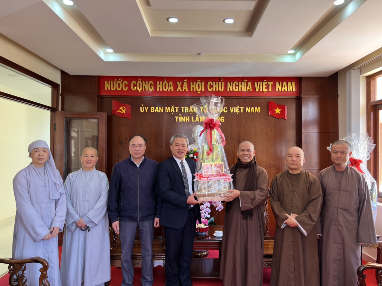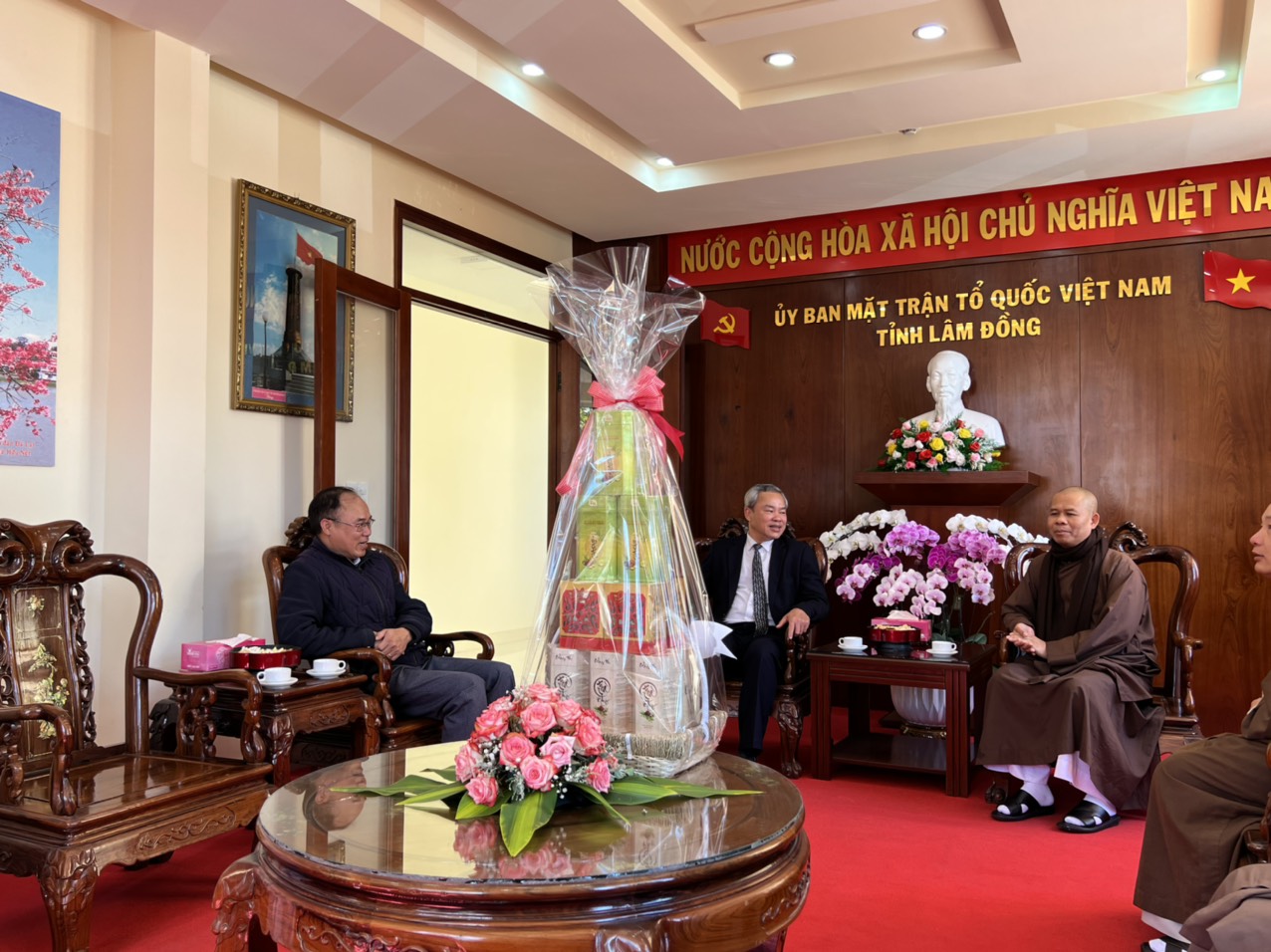 Được biết, cùng ngày Ban trị sự GHPGVN thành phố Lâm Đồng cũng tới thăm và chúc tết UB MTTQVN tỉnh, Ban Tôn giáo và Công an tỉnh Lâm Đồng.