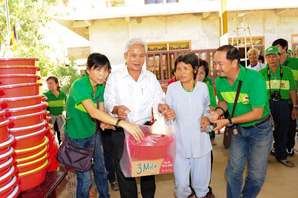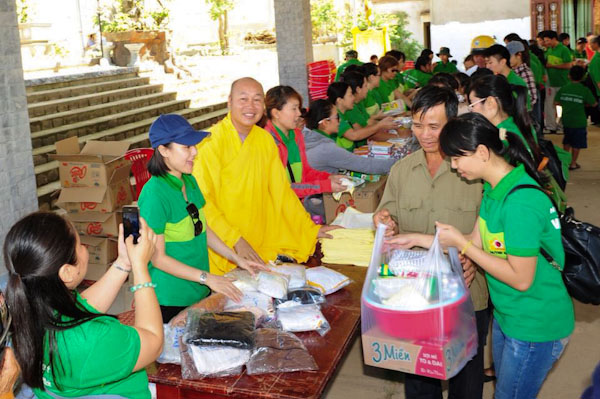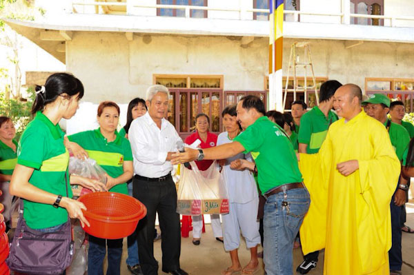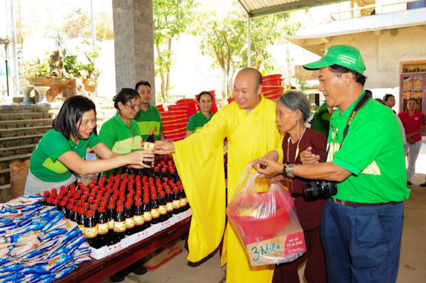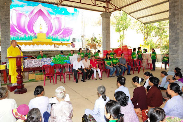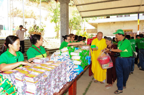 Bà con được nhận quà trong tinh thần hoan hỷ từ sự quan tâm tận tình sâu sắc của từng thành viên trong phái đoàn HuỳnhMai.