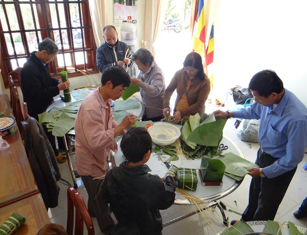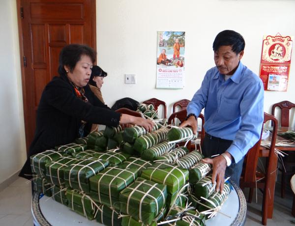Đã trở thành một thông lệ truyền thống, những ngày cận tết Giáp Ngọ, trong lúc mọi người, mọi nhà đang tất bật với những công việc cuối năm, chuẩn bị đón mừng năm mới, thì cũng là lúc Ban Từ thiện Tỉnh hội Phật giáo Lâm Đồng quây quần bên nhau, cùng chung tay chuẩn bị hàng trăm kg nếp, đậu xanh, lá giông, để gói từng cập bánh chưng, bánh tét, gói từng phần quà : nào đường, sửa bành kẹo ấm đượm tình người nhằm san sẻ, chuyển đến tận tay những mãnh đời bất hạnh còn nhiều khó khăn trong cuộc sống. Đó là những người khuyết tật, những cụ già neo đơn nghèo không người chăm sóc, những gia đình có người thân mắc bệnh hiểm nghèo, khó có thể xoay sở đâu được trong những ngày xuân về Tết đến.