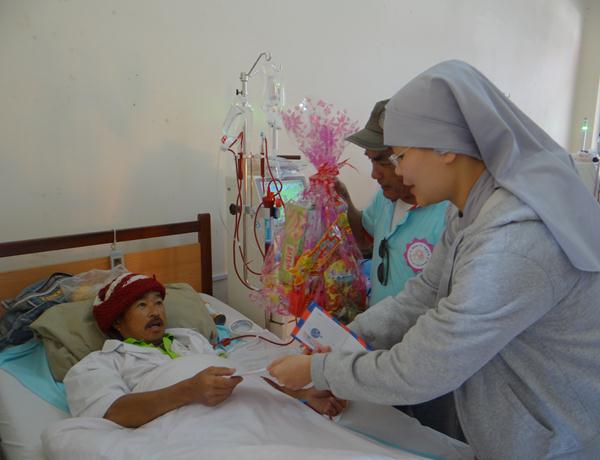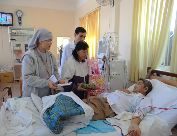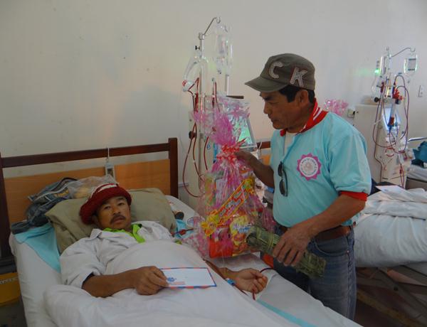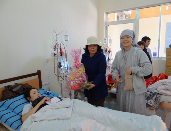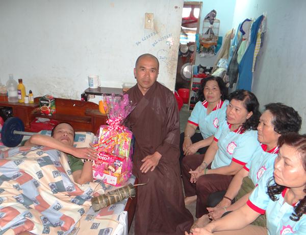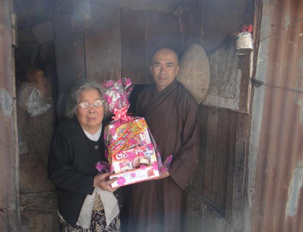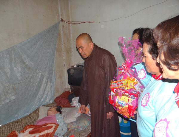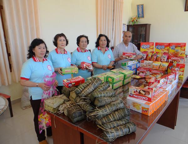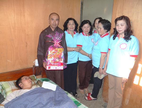 Hơn 100 phần quà, mỗi phần gồm bánh, mức, kẹo, đường sửa, 1 cập bánh tét, bánh chưng và 300.000 đồng tiền mặt, trị giá hơn 500.000 đồng một phần, được ban từ thiện Phật giáo Lâm Đồng chuẩn bị chu đáo, đem đến tận nơi, trao tận tay cho những mãnh đời nghiệt ngã đáng thương, những bệnh nhân nghèo đang rất cần được san sẻ, động viên, giúp đỡ