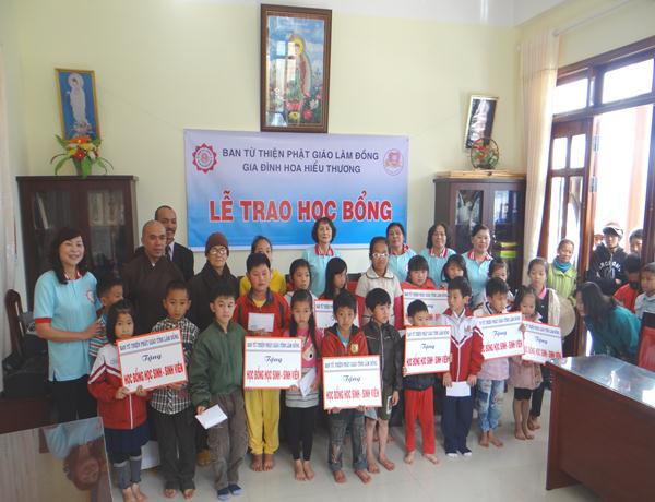 Cùng với việc tặng quà các người nghèo, người già neo đơn, Ban từ thiện giáo hội Phật giáo Lâm Đồng còn dành tặng 100 suất học bổng trị giá trên 100 triệu đồng cho các em học sinh có hoàn cảnh đặc biệt khó khăn, có thành tích tốt trong học tập để đông viên các em tiếp tục cố gắng vượt qua khó khăn, vững tin trong cuộc sống.