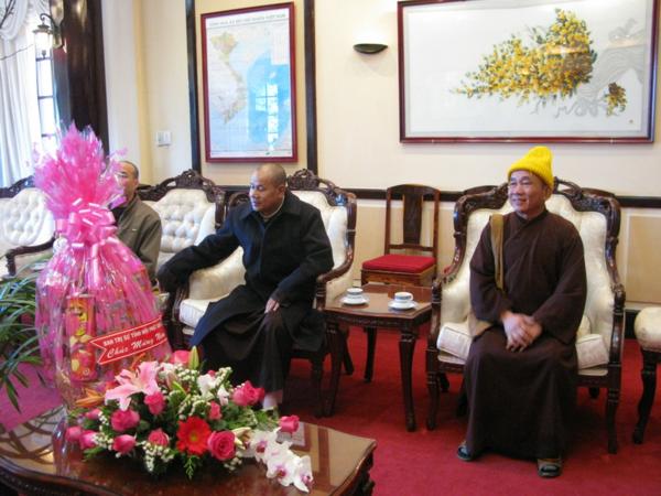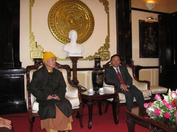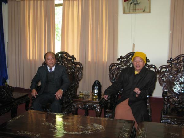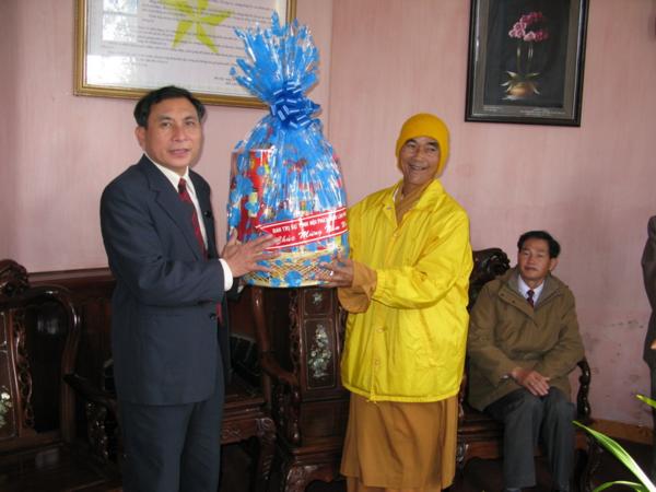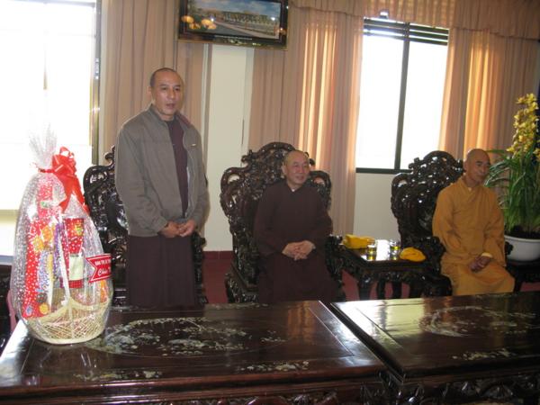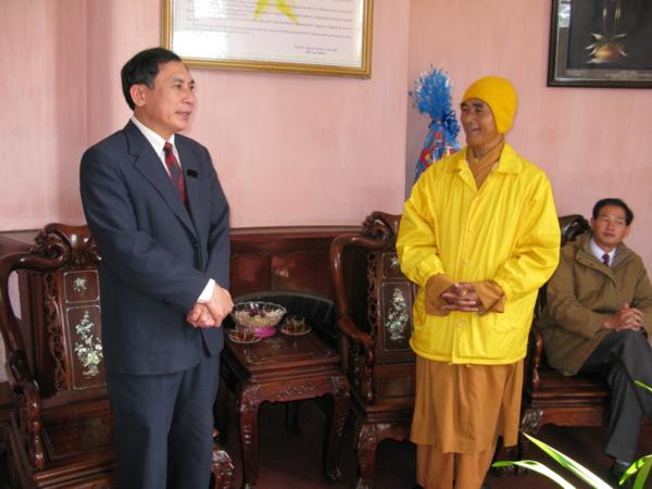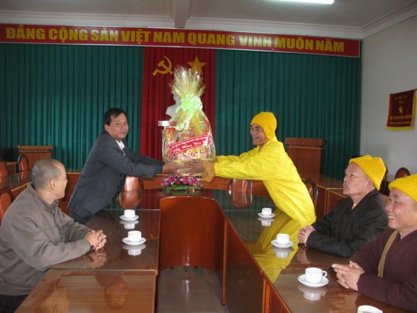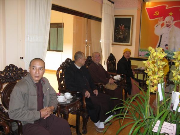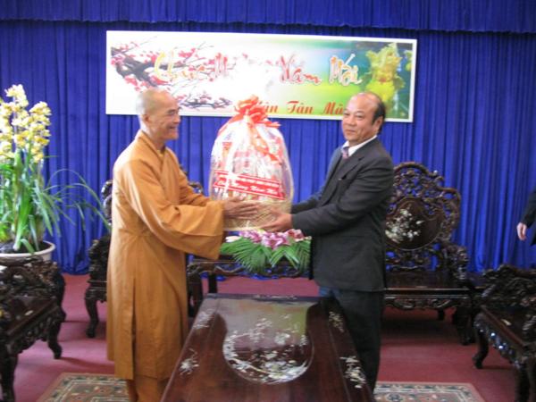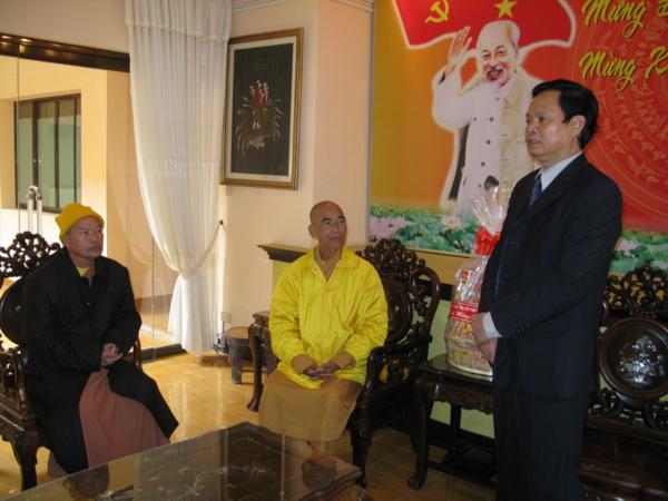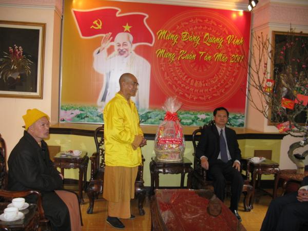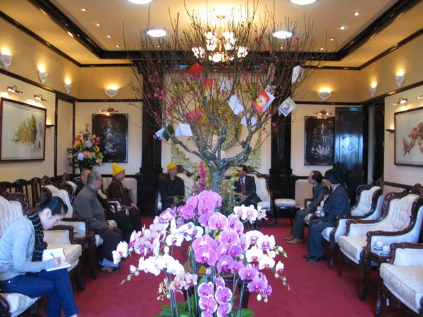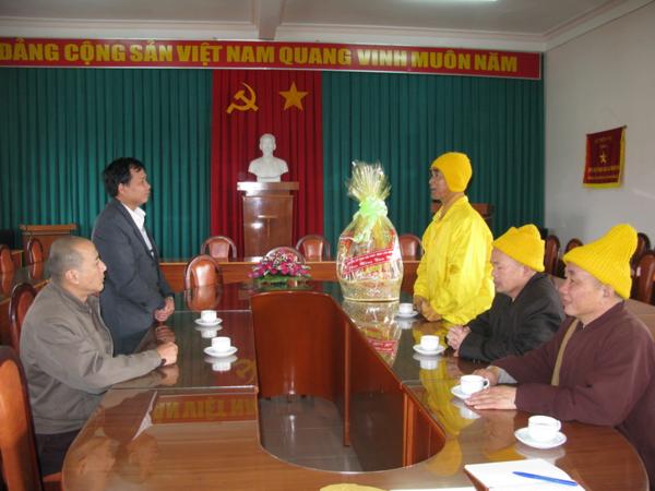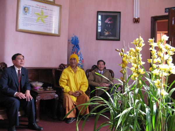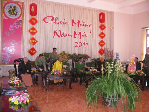 Lãnh đạo quí cơ quan đã chân thành cảm ơn những tình cảm của đoàn cũng như của bà con phật tử và xin gởi lời chúc mừng sức khỏe năm mới nhiều thắng lợi mới đến Chư Tôn Đức Tăng Ni đồng thời thay mặt tỉnh ủy ông Huỳnh Phong Tranh bí tyhu7 tỉnh ủy đã báo cáo nhanh với đoàn về tình hình sinh hoạt , an ninh chính trị đời sống kinh tế văn hóa xã hội của tỉnh nhà ngày càng khởi sắc trong đó có sự đóng góp không nhỏ của phật giáo địa phương và mong rằng lãnh đạo Ban Trị Sự cần phát huy hơn nữa những thành tích đã đạt được luôn gắn bó với chính quyền địa phương để xây dựng quê hương Lâm Đồng ngày một giàu đẹp theo phương chăm “ Đạo pháp hòa hợp với dân tộc – tốt đạo đẹp đời”