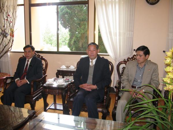 Ông Huỳnh Phong Tranh bí thư tỉnh ủy, ông Nguyễn Văn Yên phó chủ tịch ủy Ban Nhân Dân tỉnh, ông Phạm Kim Khang chủ tịch ủy Ban Mặt Trận Tổ Quốc Việt Nam tỉnh , ông Lê Minh Quang phó Ban Tôn Giáo tỉnh, ông Trần Đình Thư phó giám đốc Công An tỉnh và ông Trần Tưởng phó bí thư thường trực Thành ủy thành phố Đà Lạt đã tiếp đoàn .