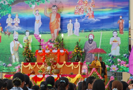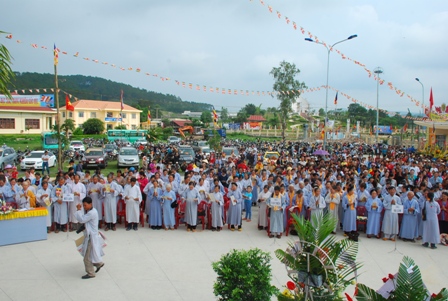 Buổi lễ chính thức được diễn ra vào lúc 07h00, ngày 12.05.2014 (nhằm ngày 14.04.Giáp Ngọ). Tại Lễ đài chính Nhà thi đấu đa năng huyện Lâm Hà. Quang lâm chứng minh và tham dự có sự hiện diện của Thượng Tọa Thích Tâm Vị – Phó ban Pháp Chế Trung ương GHPGVN, trưởng Ban Trị Sự GHPGVN Huyện Lâm Hà, Cùng chư tôn đức Tăng Ni trụ trì các chùa trong huyện, và đông đảo quý Phật tử trong và ngoài huyện đến tham dự.