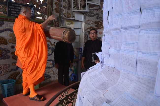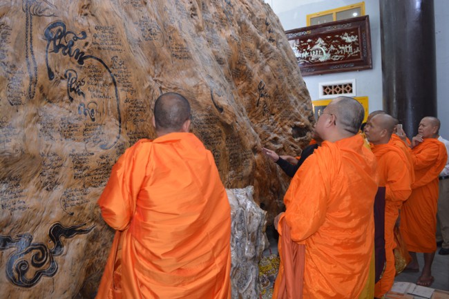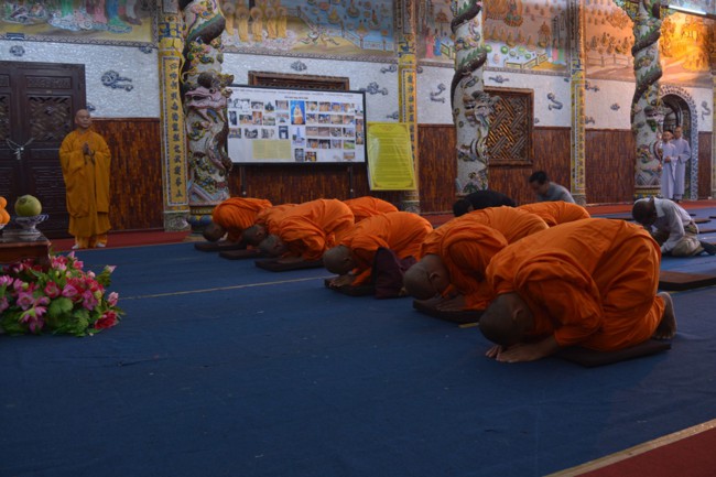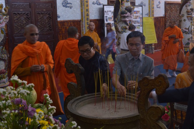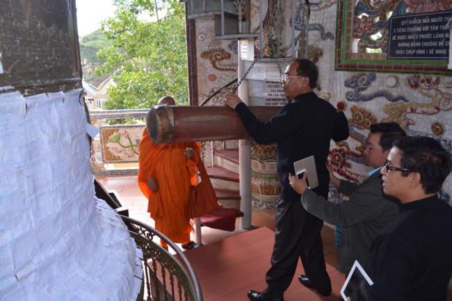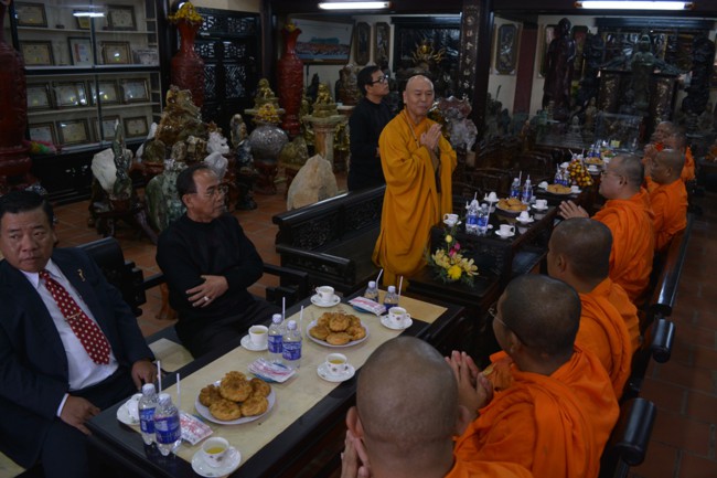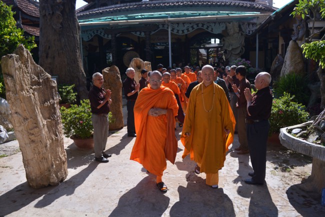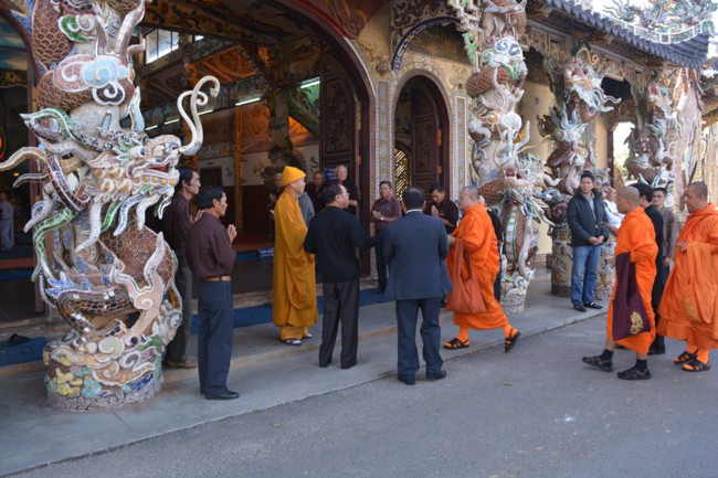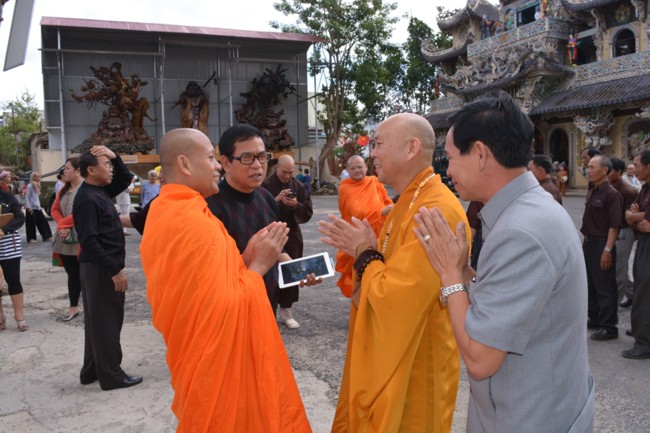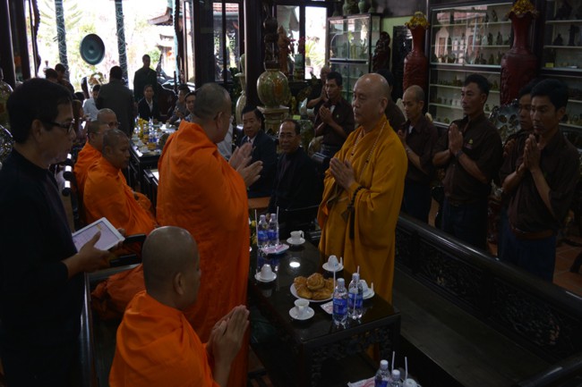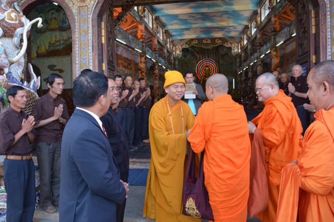 Đón tiếp phái đoàn, Thượng Tọa Thích Tâm Vị, trụ trì Chùa Linh Phước, cùng Tăng chúng và Phật tử bổn tự tiếp đón.