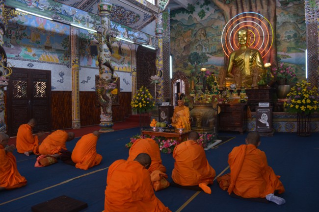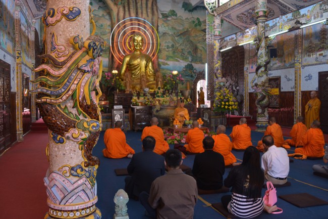 Phái đoàn đã vào Chánh điện dâng hương và cùng Các Sư tụng một thời kinh cầu nguyện.