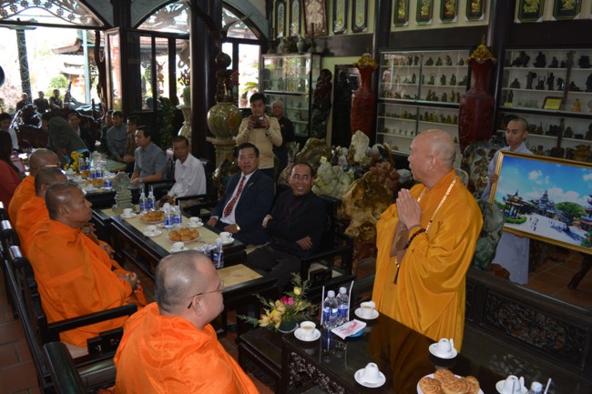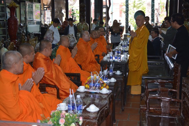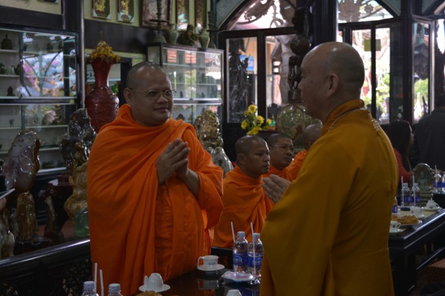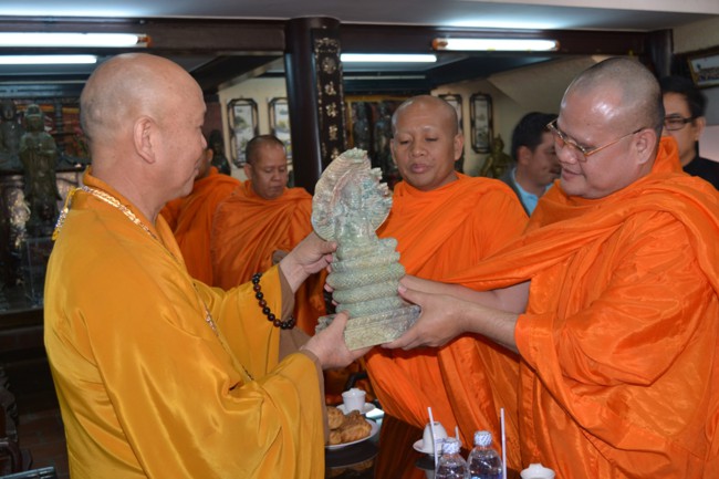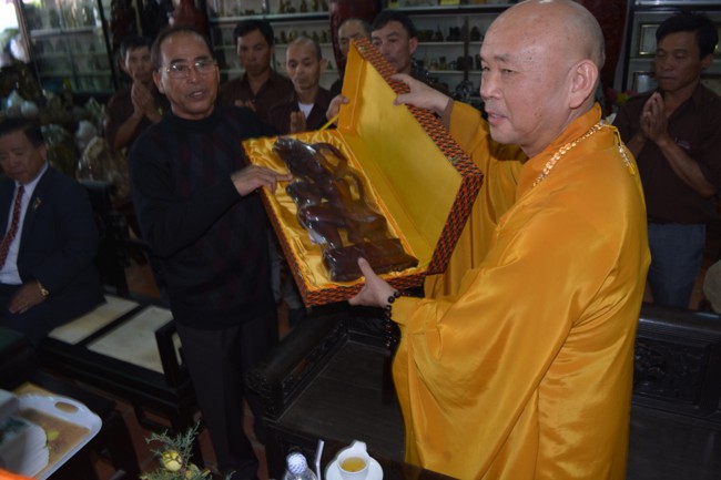 Tại khách phòng, sau khi dùng trà nước Thượng Tọa Tiến Sĩ CHHOENG BUNCHHEA đã có lời thăm hỏi và cầu chúc tốt lành đến bổn tự. Sau lời thăm hỏi Nhà Sư đã tặng một tôn tượng Phật Bổn Sư bằng ngọc cho bổn tự lưu niệm. Đại Tướng DIENG SARUN cũng có món quà tặng từ đất nước Campuchia.