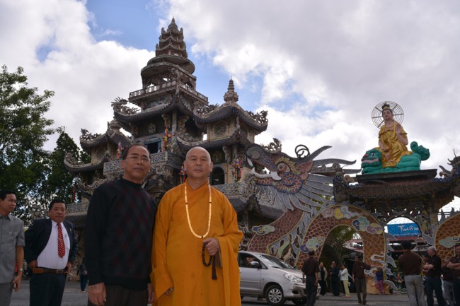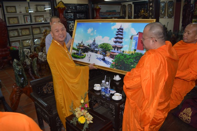 Thượng tọa trụ trì đã rất hoan hỷ và vinh dự đón tiếp phái đoàn thăm Chùa. Cảm ơn phái đoàn Thượng Tọa trụ trì đã gởi tặng bức tranh hình chùa Linh Phước kỷ niệm.