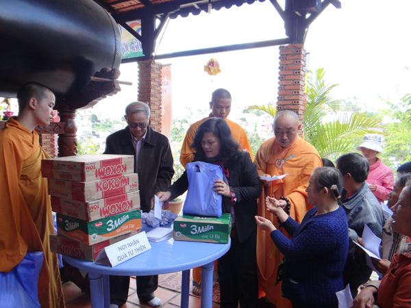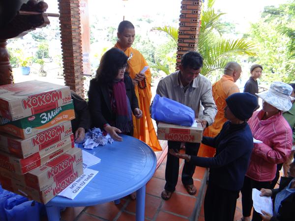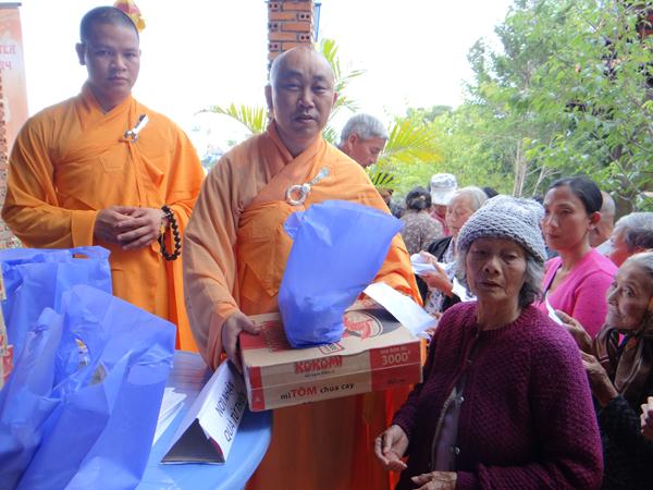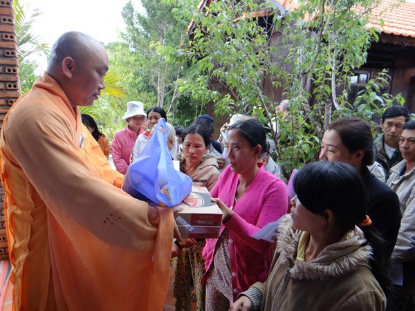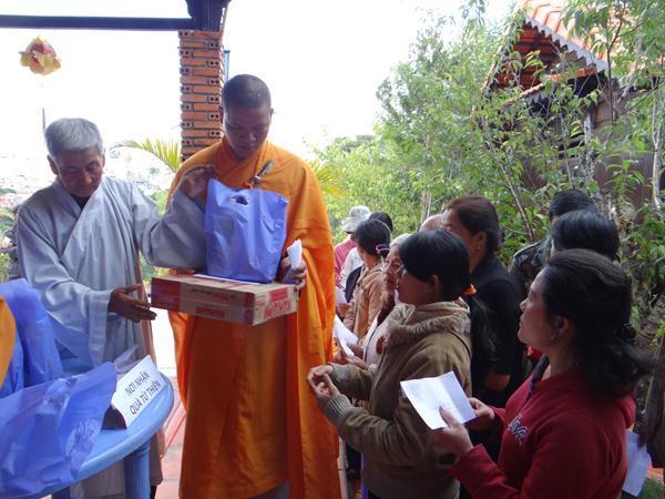 Cũng nhân dịp này, chùa Bồ Đề đã dành 70 phần quà, mỗi phần trị giá 350.000 đồng cho bà con địa phương có hoàn cảnh khó khăn nhân mùa Đức Phật đản sanh .