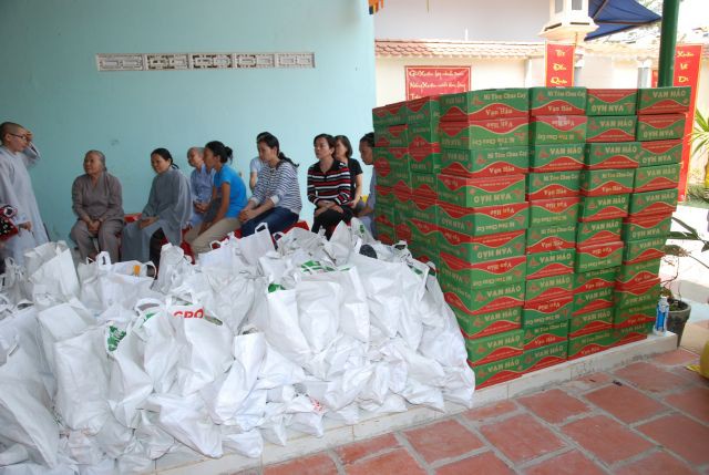 Nhân dịp này, Đại đức trú trì cũng phối kết hợp với phái đoàn Phật tử Tp.HCM do Phật tử Diệu Chí hướng dẫn trao tặng 200 phần quà cho đồng bào dân tộc thiểu số tại địa phương.