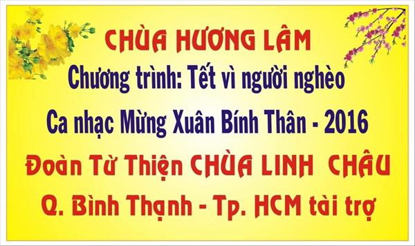 “ Tết vì người nghèo” là chủ đề của đêm ca nhạc mừng xuân Bính Thân ( 2016 ) vừa được diễn ra vào lúc 19 giờ 30 ngày 24/1/2016 , tại chùa Hương Lâm xã Đạ Lây huyện Đạ Tẻh tỉnh Lâm Đồng do ĐĐ. Thích Chân Tâm cùng đoàn từ thiện chùa Linh Châu quận Bình Thạnh và nhóm văn nghệ sĩ trẻ thành phố Hồ Chí Minh biểu diễn .