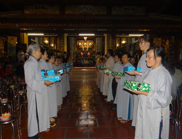Sau lời đạo từ nhắc nhủ đại chúng về ý nghĩa sâu sắc của Đại lễ Vu Lan, về công ơn sinh thành; dưỡng dục của mẹ cha to lớn như trời biển … Đại đức Thích Hoằng Ngộ Và đạo tràng phật tử chùa Liên Trì đã dâng lời tác bạch cúng dường phẩm vật mừng chư tăng tự tứ; sau ba tháng an cư thúc liễm thân tâm; trao dồi giới đức . Nhóm văn nghệ sĩ thành phố Đà Lạt cúng dường buổi lễ bằng những lời ca; tiếng hát ca ngợi tình yêu quê hương; đất nước; mái chùa; thầy tổ và ơn nghĩa sinh thành của mẹ cha .