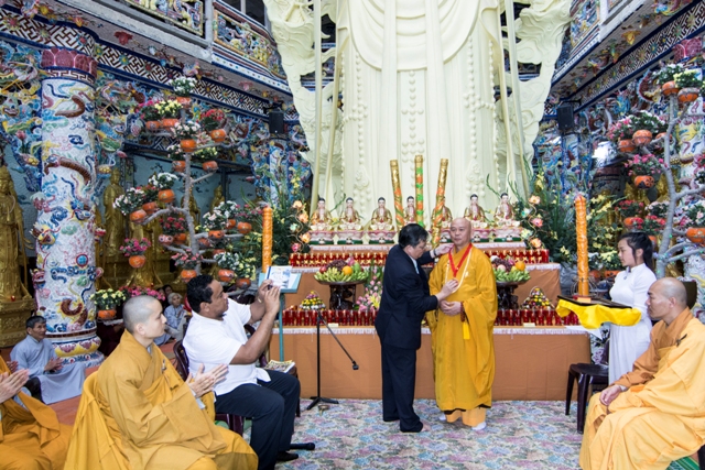 Chứng minh và tham dự có sự hiện diện: TT Thích Tâm Vị – Phó ban pháp chế Trung ương GHPGVN, Trưởng ban Pháp chế GHPGVN tỉnh Lâm Đồng, Trụ trì Chùa Linh Phước; Cùng Chư Tôn Đức Tăng Ni trong thành phố và ngoài huyện, cùng hơn 500 Phật tử về tham dự lễ.