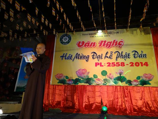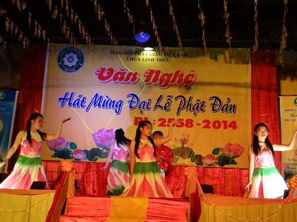 “ Hát Mừng Đại Lễ Phật Đản” là chủ đề của đêm văn nghệ được diễn ra vào đêm 4/5/2014 ( nhằm ngày 6/4/Giáp Ngọ) tại chùa Linh Thứu , phường 9 Tp Đà Lạt, do đạo tràng và các em đoàn sinh gia đình Phật tử của chùa biểu diễn, cung kính cúng dường mừng ngày Đức Phật đản sanh PL . 2.558 – DL . 2014 .