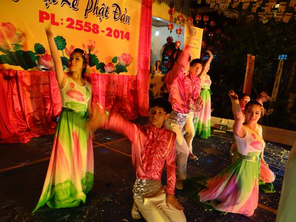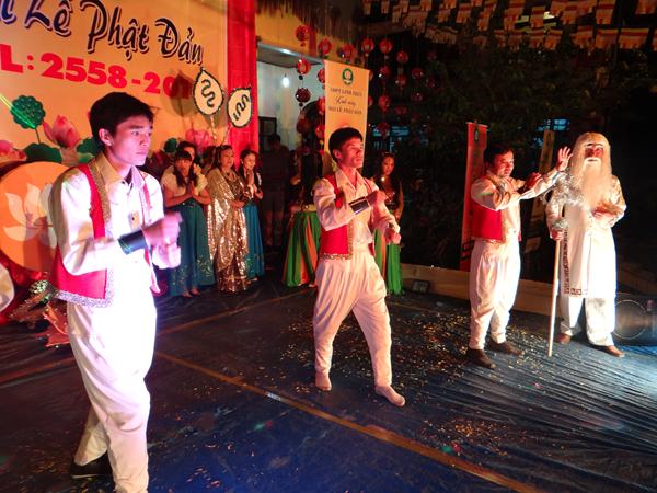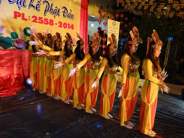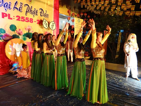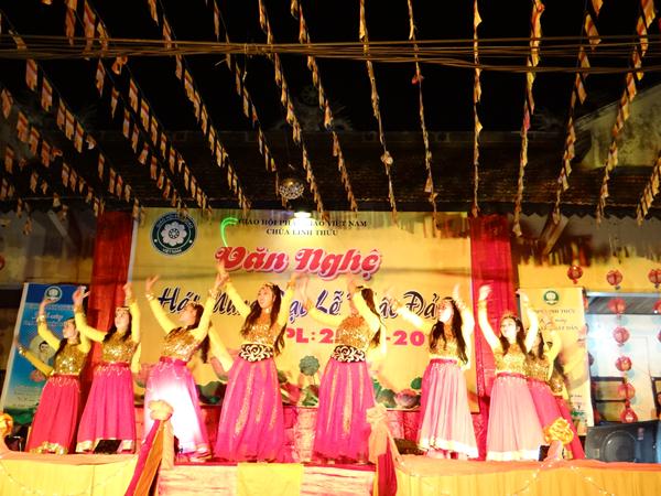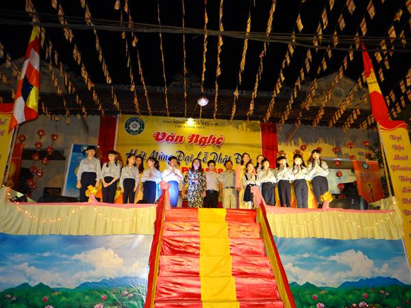 Với 17 tiết mục, gồm các thể loại : ca, múa, hoạt cảnh, nhạc kịch … mang chủ đề : Ca ngợi tình yêu quê hương đất nước, mái chùa, Thầy Tổ … được đầu tư, giàn dựng công phu, phục trang bắt mắt . Đặc biệt các tiết mục : Khai dòng Thánh tử ( tái hiện lại hình ảnh Đức Phật đản sanh tại vườn Lâm Tỳ Ni cách đây trên 2.000 năm) , Phật Bà ngàn mắt ngàn tay, Nhịp vui khánh đản, Phật Hoàng Trần Nhân Tông, Ngày rằm tháng tư, Hương sen đại lễ … đã nhận được những tràng pháo tay, sự cổ vũ nhiệt tình, mang lại nhiều cảm xúc, nhiều ấn tượng tốt đẹp trong lòng hàng trăm khán giả đến tham dự .