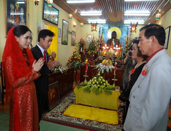 Xuất phát từ tý nghĩa sâu sa này, sáng hôm nay, ngày 29/4/2015 ( nhằm ngày 11/3/ Ất Mùi ), lễ Hằng Thuận của đôi bạn trẻ Phật tử, Tân lang : Trần Nguyễn Bảo Huy PD : Nguyên Phúc và Tân nương, Nguyễn Thị Kim Trang PD : Hạnh Lạc . Hôn lễ được trang nghiêm, hoan hỷ cử hành tại chùa Thiên Phước, Phước Thành, phường 7 Tp Đà Lạt .