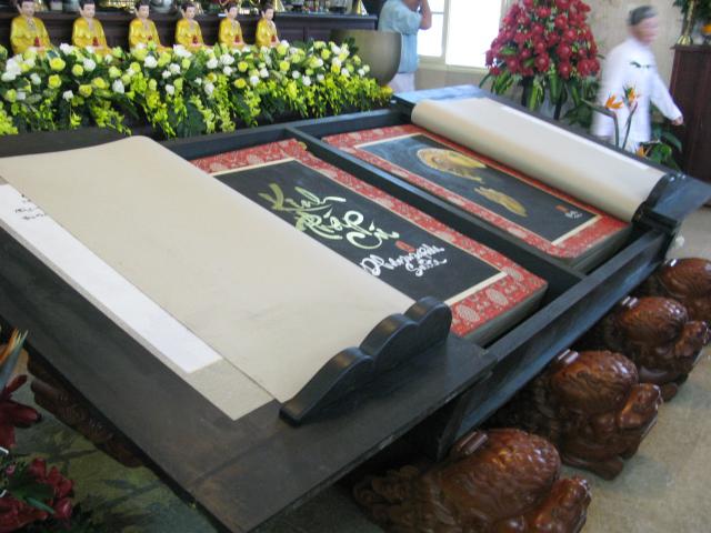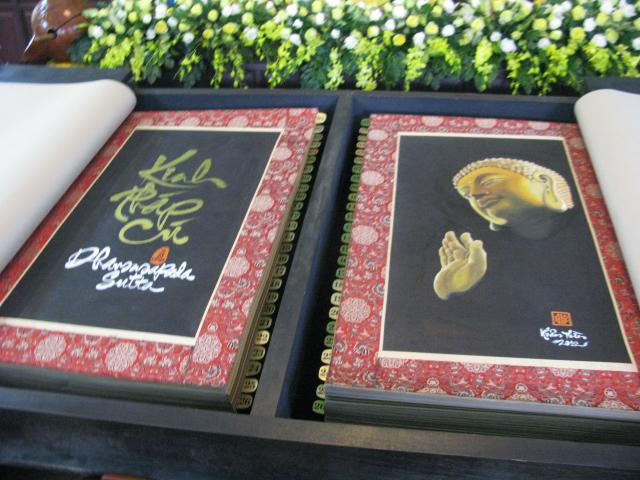 Phật tử Vũ Đăng Học pháp danh Nguyên Đăng nhân đại lễ đã pháp tâm cúng dường bộ thư pháp “ Kinh Pháp Cú” trên khổ giấy A0, dầy hơn 500 trang , được thực hiện trong vòng hai năm ( 2011 – 2012 ) dựa theo bản thể thơ kệ của thầy giáo Tịnh Minh ( Đặng Ngọc Chức ) với 26 phẩm gồm 423 bài kệ tiếng Việt và đã chuyển thể sang tiếng Anh, hiện Pháp Bảo đang được lưu giữ tại chùa Tuệ Quang phường VI TP Đà Lạt .