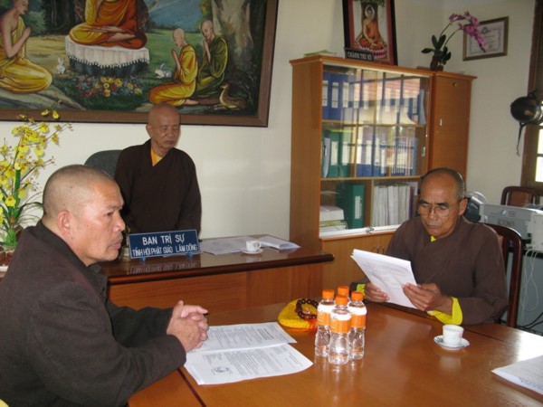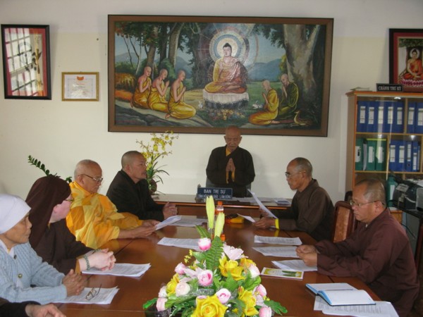 Chiều hôm nay 03/09/2010 tại văn phòng Ban Trị Sự (chùa Linh Sơn, thành phố Đà Lạt), HT Thích Pháp Chiếu – Trưởng ban Trị sự kiêm Trưởng ban Tổ chức đã cùng chư tôn thiền đức tăng ni, quí phật tử trong 14 tiểu ban phục vụ đại lễ họp rà soát, bổ khuyết công tác chuẩn bị cho lễ thỉnh linh vị chư vong linh từ các huyện thị thành trong toàn tỉnh về an trí tại chùa Linh Sơn vào sáng ngày mai 04/09/2010, mở đầu cho đại lễ.