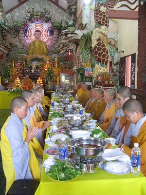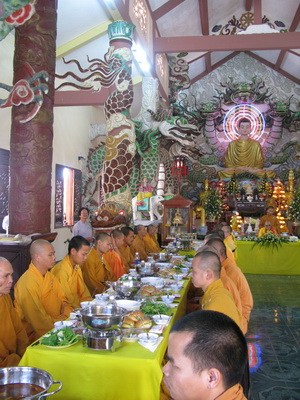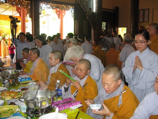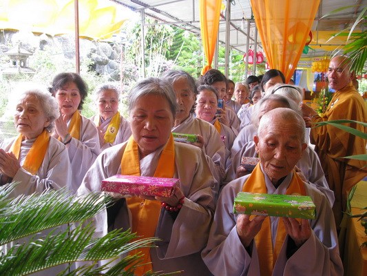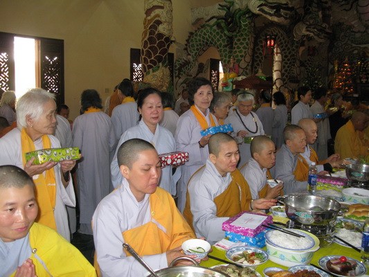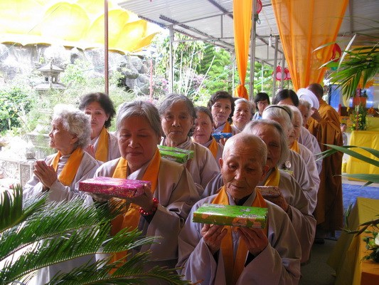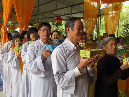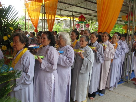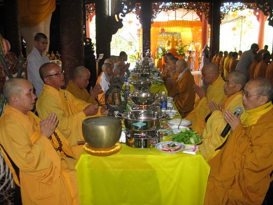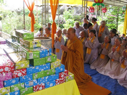 Sáng ngày 15/7 toàn thể đạo tràng sẽ lắng đọng qua khóa lễ “dâng cơm báo hiếu” ( phật tự sắm sửa phẩm vật xếp vào một khay nhỏ và tự tay dâng cúng cho chư hương linh người thân của mình) trước khi chư tôn thiền đức cử hành lễ kỳ siêu, giải oan bạt độ …