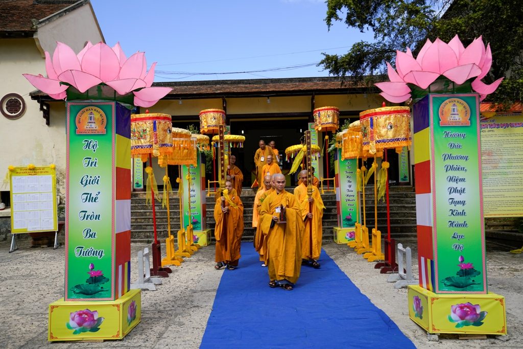 Chương trình bao gồm : Cung nghinh chư tôn Hội Đồng chứng minh, Hội Đồng thập sư Nhị Bộ yết tổ, thỉnh Ba La Đề Mộc Xoa tại Tổ đình Linh Quang về giới trường chùa Linh Sơn Tp Đà Lạt, diễn từ của Ban tổ chức, Cung an Chức sự, cung nghinh hòa thượng Tuyên luật sư khai đạo giới tử, cung an chức sự, niêm hương bạch Phật, khai chung bản ….