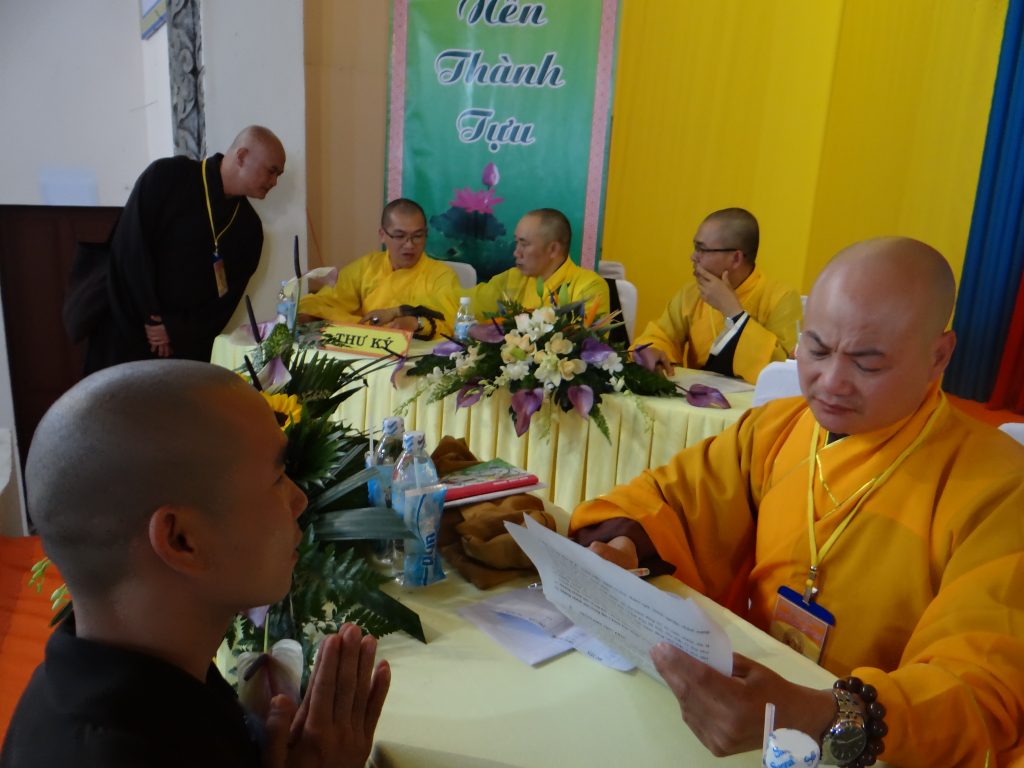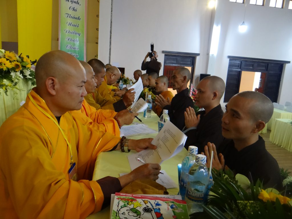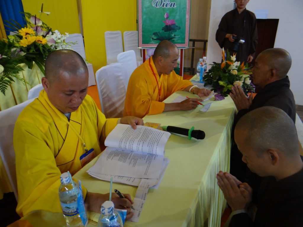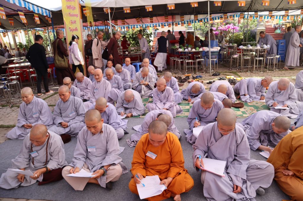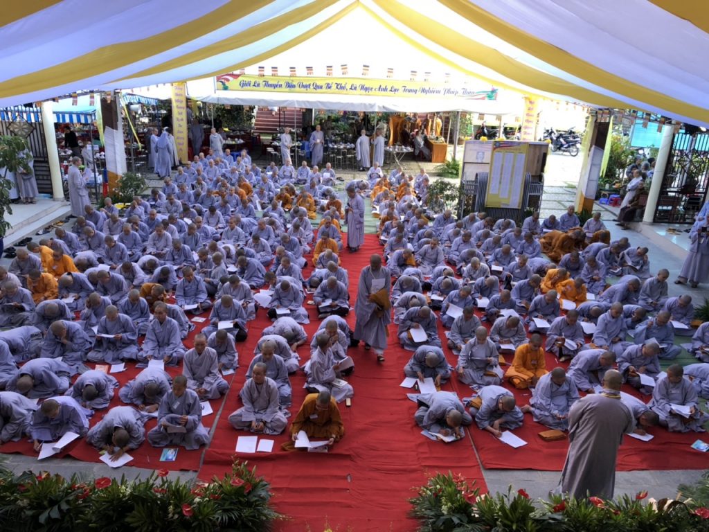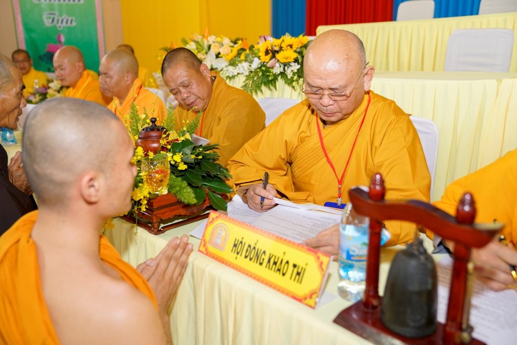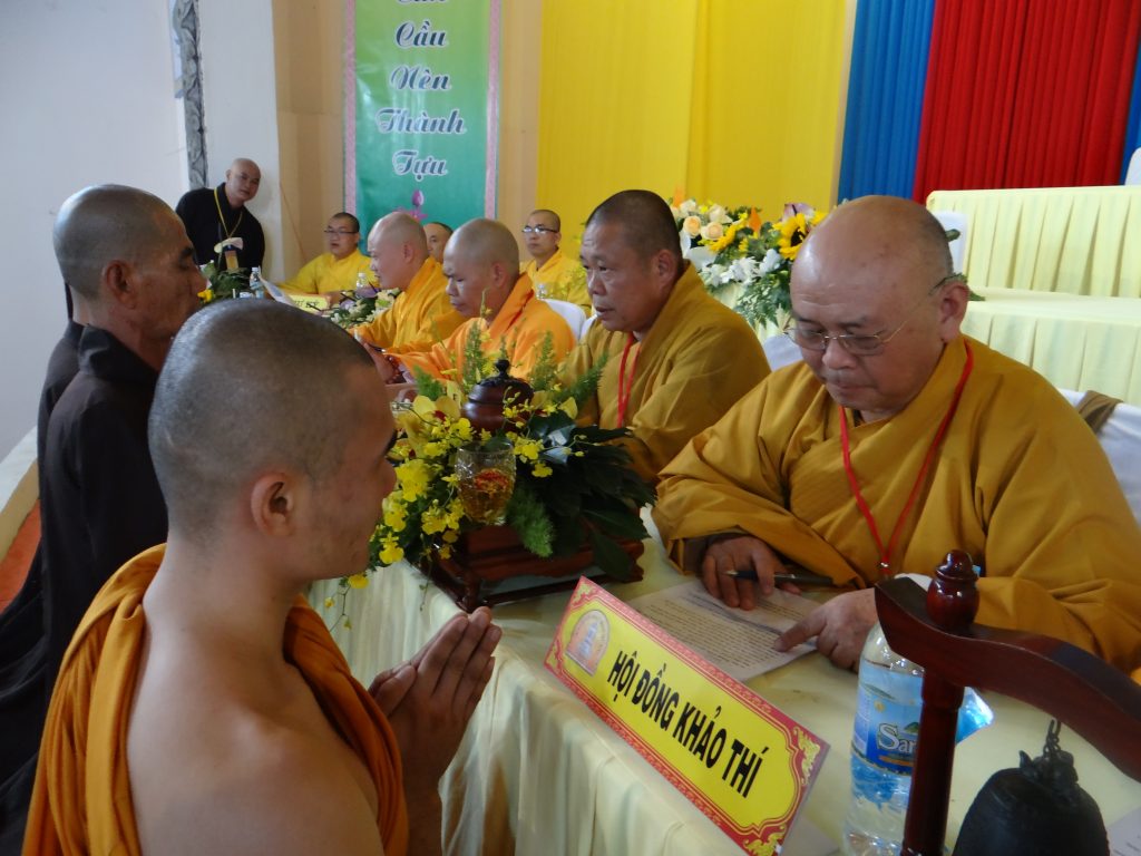 Nằm trong chương trình Đại giới đàn, Chiều hôm nay, vào lúc 14 giờ 30, tất cả các giới tử bước vào phần thi khảo hạch, vấn đáp với nội dung : kinh, luật, luận . Chánh chủ khảo Đại giới Đàn tăng là HT. Thích Toàn Đức và Giới đàn Ni là NT. Thích Nữ Huệ Phước .