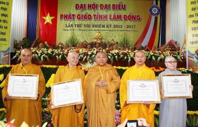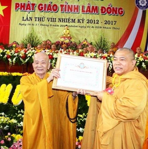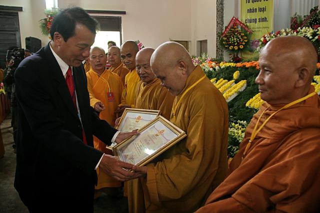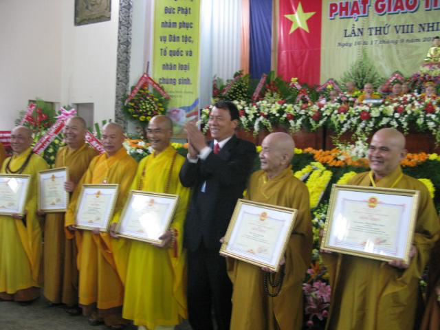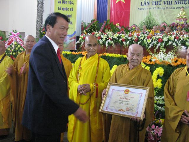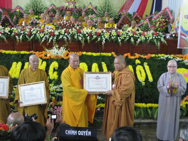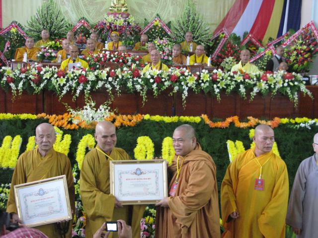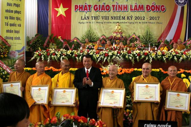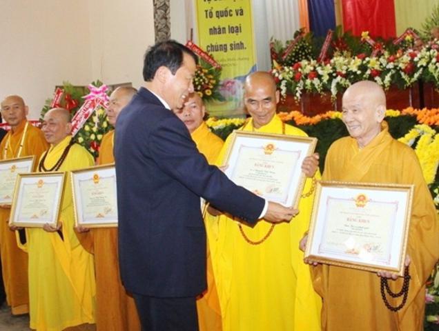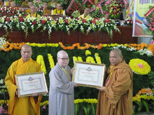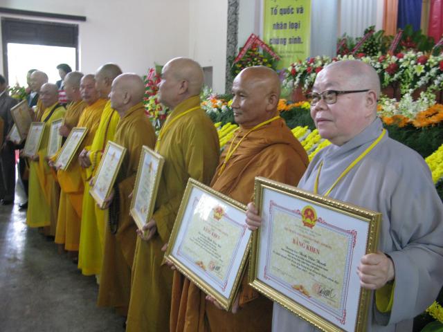 Cũng nhân dịp này, thường trực Hội Đồng Trị Sự, ủy Ban Nhân Dân tỉnh và ủy Ban MTTQVN tỉnh đã tặng bằng tuyên dương công đức, băng khen đến các tập thể, cá nhân đã có nhiều đóng góp trong công tác phật sự của Phật giáo tỉnh nhà nhiệm kỳ vừa qua .