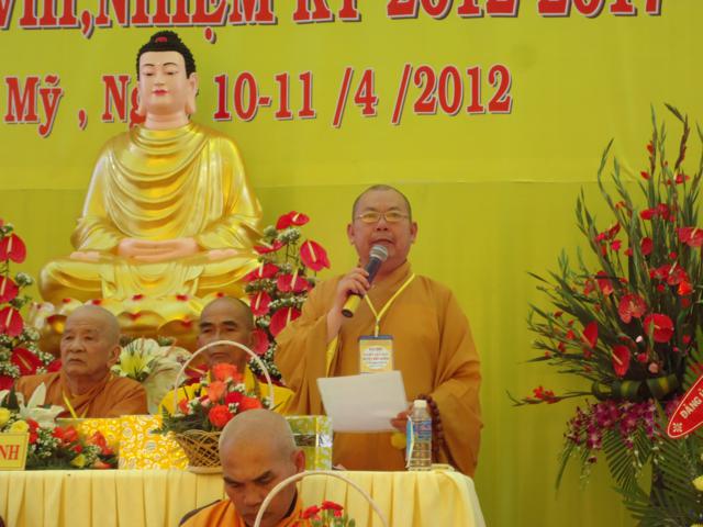Đại Đức Thích Phương Quy – phó ban đại diện báo cáo tóm tắt hoạt động Phật sự nhiệm kỳ cũ và phương hướng hoạt động trong nhiệm kỳ mới.