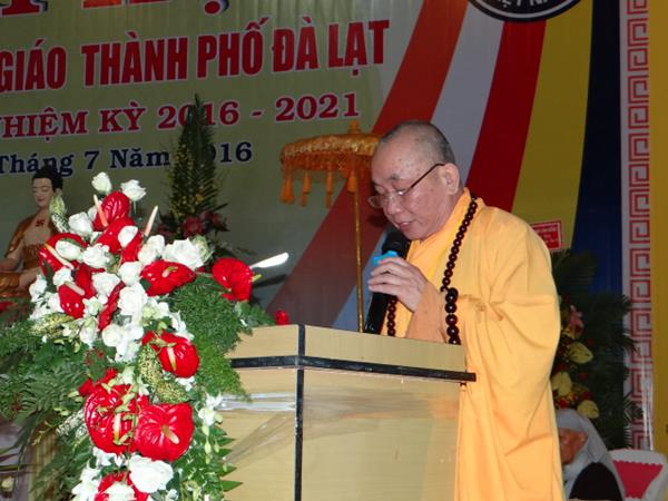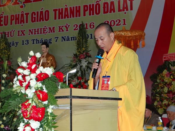 Báo cáo tổng kết hoạt động phật sự nhiệm kỳ 2012 – 2016, đã nêu “ với tinh thần hòa hợp , đoàn kết phụng sự Đạo pháp, Dân tộc, GHPGVN Tp Đà Lạt đã đề ra những chương trình hoạt động phù hợp với tâm tư, nguyện vọng của tăng, ni và phật tử nói riêng và toàn thể quần chúng nhân dân Tp Đà Lạt nói chung, đã tạo nên sự tin tưởng vào chủ trương đường lối lãnh đạo Giáo Hội, góp cho Giáo Hội ngày càng trang nghiêm, phát triển bền vững trong lòng dân tộc .