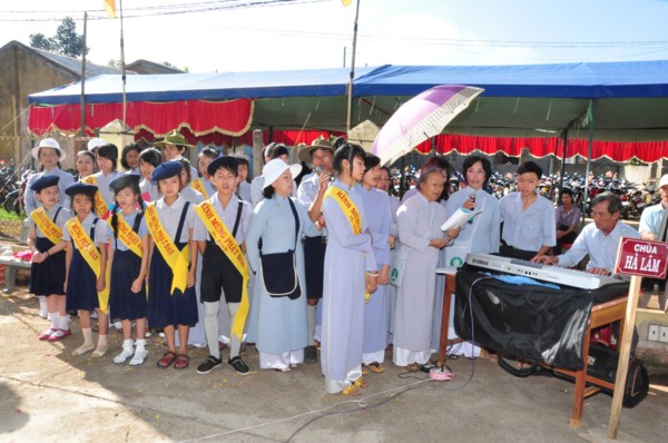 Lần đầu tiên đồng bào Phật tử huyện Lâm Hà tỉnh Lâm Đồng được xem Văn nghệ Phật giáo, do các nghệ sĩ Phật tử TP.Hồ Chí Minh biểu diễn, các cụ rủ nhau dẫn cháu con đến xem thật là vui!