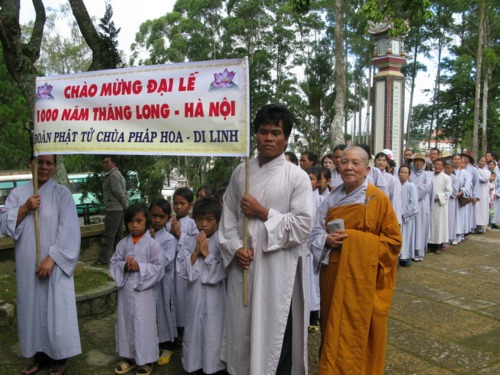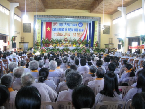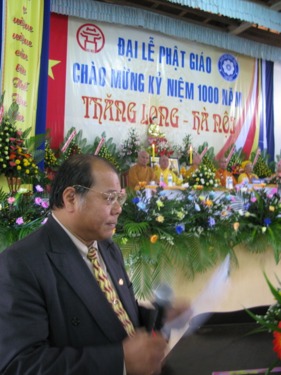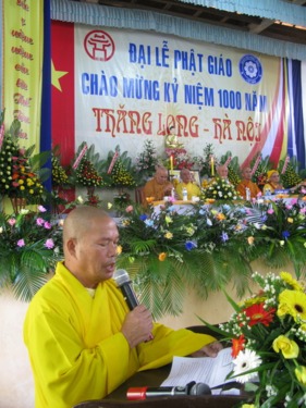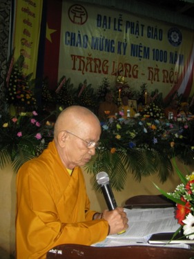 Trong diễn văn khai mạc HT Thích Pháp Chiếu trưởng Ban Trị Sự nhấn mạnh : ôn cố tri tân là một nét đẹp văn hóa của hàng hậu học , chúng ta phải hiểu biết lịch sử truyền thống hào hùng của Ông Bà Tổ Tiên để bảo tồn bản sắc dân tộc , phải biết dùng tinh hoa của quá khứ , nâng bước đi hôm nay vươn tới tương lai . Kỷ niệm 1.000 Thăng Long chúng ta ghi nhớ công ơn của Thiền Sư Vạn Hạnh . Người đã đào luyện cậu bé Lý Công Uẩn thành một bậc minh quân ở nước ta vào đầu thiên niên thứ nhất ( vua Lý Thái Tổ ) .Từ đó trãi dài theo những bước thăng trầm của Đất Nước Phật giáo luôn đồng hành cùng Dân Tộc , khẳng định niềm tin nơi sức mạnh nhân từ đầy trí tuệ góp phần làm nên biết bao chiến thắng hào hùng oanh liệt . Công lao của Phật giáo đã được vua Lý Nam Đế khẳng định bằng ngôi chùa Khai Quốc “ mở nước” ( năm 938) …