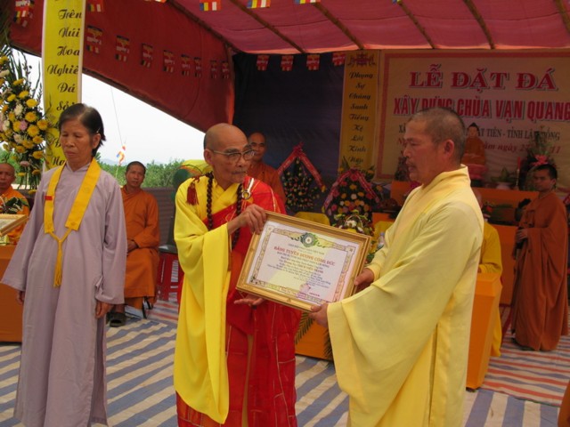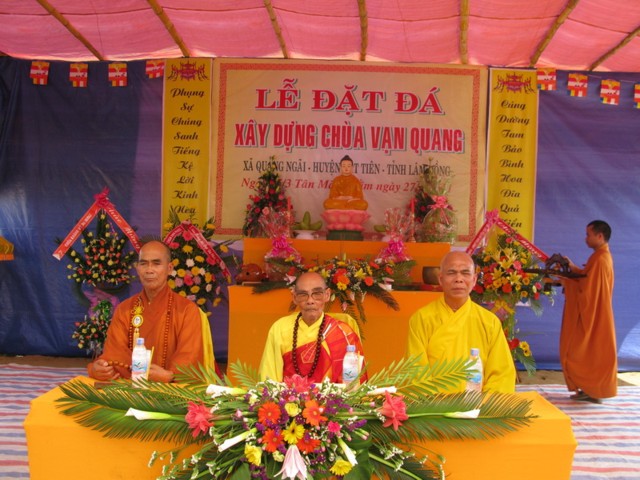 Được biết chùa Vạn Quang nằm trong địa bàn xã Quãng Ngãi trên một khu đất rộng do TT Thích Viên Thanh – Phó Ban Trị sự Phật giáo tỉnh Lâm Đồng cúng dường 1 mẫu và Phật tử Vũ Thị Phai cúng dường 3 xào.