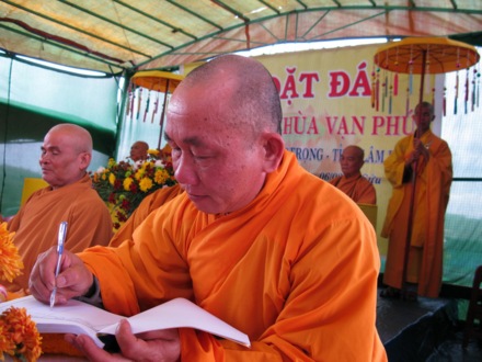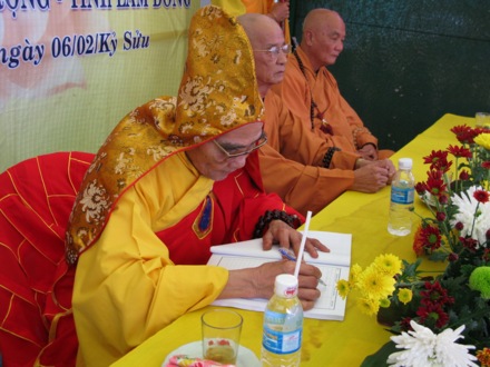TT Thích Thanh Tân – Phó ban Trị sự ký sổ vàng cúng dường