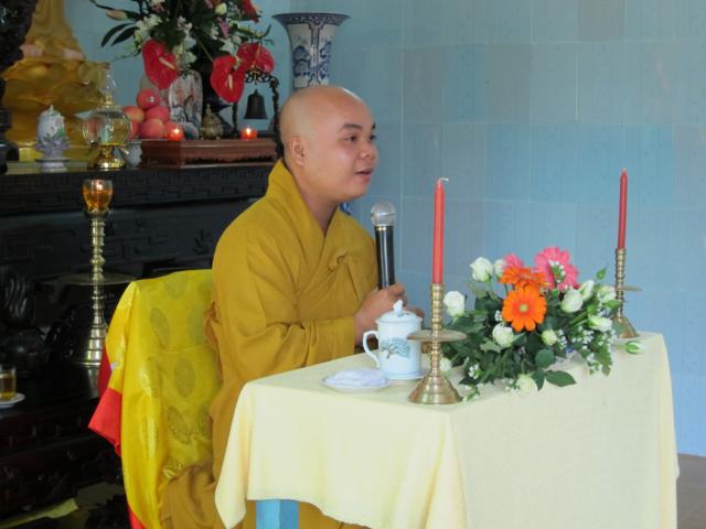 Cùng ngày, Đại Đức Giảng Sư Thích Minh Thành đến từ Tp Hồ Chí Minh đã giảng cho quý vị phật tử tại đạo tràng bài pháp với chủ đề "Mười Nấc Thang An Lạc".