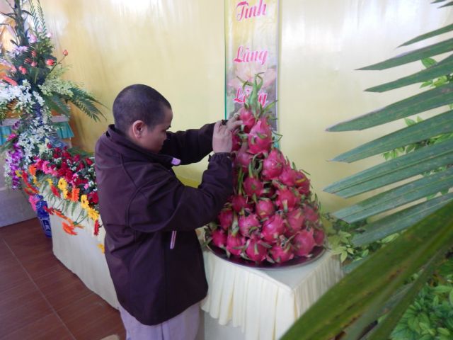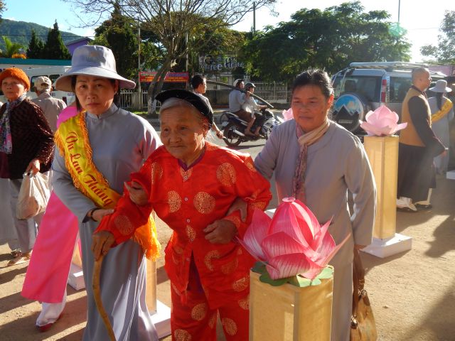Buổi sáng tại thị trấn sương mù, trong khí trời mát lạnh của vùng đất cao nguyên, quý Phật tử nô nức trở về chùa trong niềm hoan hỷ vô biên, mỗi người một công việc để hoàn tất những khâu cuối cùng của công tác chuẩn bị, đồng lòng hướng về đại lễ chúc thọ sẽ chính thức diễn ra lúc 8h30 ngày13.7. Giáp Ngọ. Nhìn các cụ già với nụ cười an lạc, trong tay dìu của con cháu và các bạn tình nguyện viên hướng về lễ đài chính để chuẩn bị dự lễ chúc thọ, báo hiệu ngày hội tôn vinh các đấng sanh thành chính thức được bắt đầu.