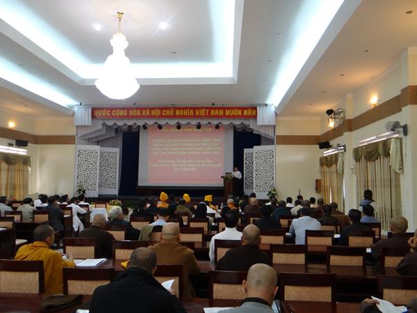 Hội nghị sẽ diễn ra từ ngày 17/7 đến 20/7/2017, theo đó; các đại biểu sẽ được các phó giáo sư, tiến sỹ, giảng viên cao cấp thuộc Học viện An ninh Nhân dân – Bộ Công an; Học viện Chính trị – Bộ Quốc phòng; Ban Tôn giáo Chính phủ; Bộ Nội vụ… trình bày 6 nội dung, chuyên đề, bao gồm: Đường lối, quan điểm của Đảng Cộng sản, chính sách, pháp luật của Nhà nước Việt Nam về dân tộc tôn giáo gắn với quốc phòng, an ninh trong tình hình mới; Đường lối, quan điểm của Đảng Cộng sản, chính sách, pháp luật của Nhà nước Việt Nam về bảo vệ an ninh quốc gia, xây dựng nền an ninh nhân dân, thế trận an ninh nhân dân gắn với xây dựng nền quốc phòng toàn dân; Đường lối, quan điểm của Đảng Cộng sản, chính sách, pháp luật của Nhà nước Việt Nam về bảo vệ an ninh chính trị, kinh tế, văn hóa, tư tưởng trong tình hình mới; phòng chống chiến lược “Diễn biến hòa bình”, bạo loạn lật đổ của các thế lực thù địch đối với cách mạng Việt Nam; Nội dung cơ bản của Luật Tín ngưỡng tôn giáo; một số vấn đề về kết hợp phát triển kinh tế – xã hội gắn với tăng cường, củng cố quốc phòng, an ninh…