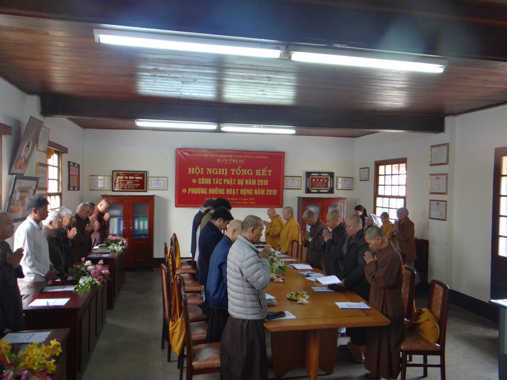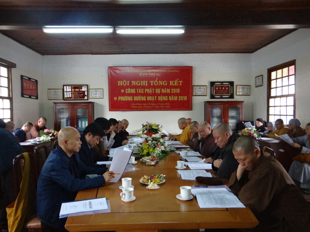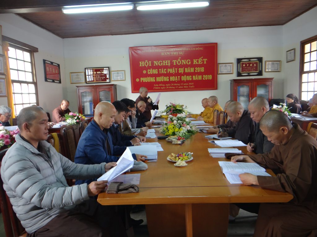 Đề ra phương hướng nhiệm vụ và chương trình hoạt động Phật sự năm 2019, Phật giáo tỉnh LĐ tiếp tục củng cố; thống kê các cơ sở tự viện, tăng cường công tác quản lý Tăng Ni, tự viện .Tiếp tục giải quyết các vụ việc tại TX Ngọc Hiếu Tp ĐàLạt, chùa Linh Quang Tp Bảo Lộc, chùa Linh Trung huyện Di Linh, chùa Giác Tâm huyện Đức Trọng . Xin chủ trương xây dựng trụ sở Phật giáo tỉnh nhà trong khuôn viên chùa Linh Sơn Tp ĐàLạt, kiến nghị cho phép xây dựng mới và hợp thức hóa các cơ sở thờ tự trong tỉnh . Đăng cai Hội nghị Hoằng Pháp Trung Ương vào tháng 11 năm 2019 tổ chức tại chùa Linh Sơn Tp Đà Lạt . Đại lễ Phật đản Liên Hiệp Quốc PL. 2563 – DL. 2019 .
