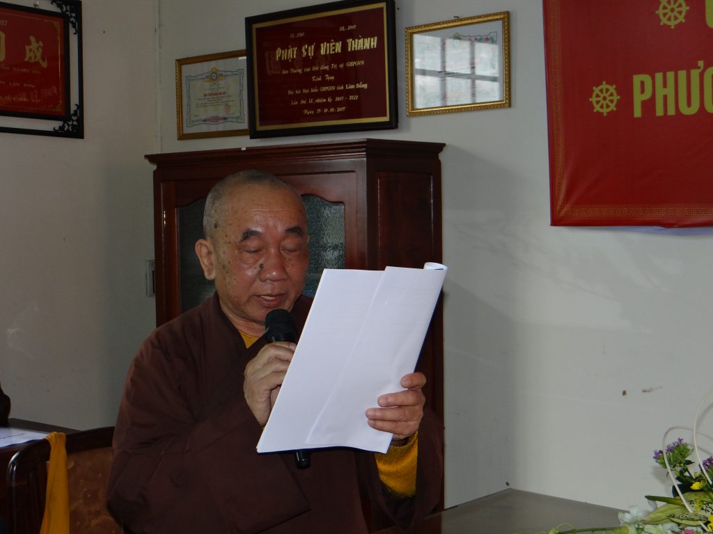 Hội nghị do TT. Thích Thanh Tân, UV. HĐTS, Phó trưởng Ban TT, BTS GHPGVN tỉnh Lâm Đồng chủ trì, tham dự còn có chư tôn đức Tăng Ni, quí phật tử trong Thường trực BTS Phật giáo các huyện thị thành trong toàn tỉnh và đại diện lãnh đạo, quí cấp chính quyền một số cơ quan ban nghành trên địa bàn tỉnh nhà .