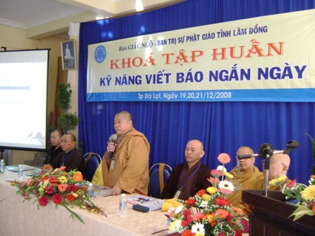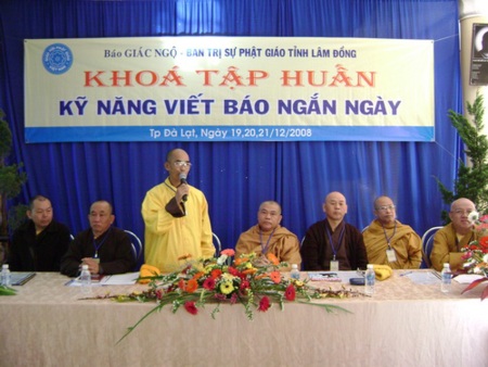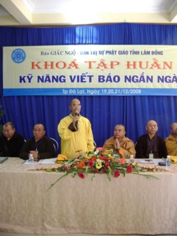 Phát biểu khai mạc, HT.Thích Giác Toàn sách tấn các Học viên cố gắng học tập thêm những kỹ năng làm báo Phật giáo. Sau lễ khai mạc, Hòa thượng ban thời pháp thoại cho tất cả Học viên với chủ đề “Đạo đức người làm báo”.