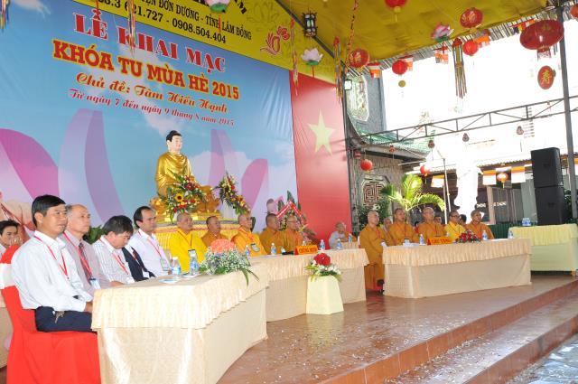 Chứng minh và tham dự lễ khai mạc có sự hiện diện của HT. Thích Toàn Đức, Ủy viên HĐTS, trưởng BTS GHPGVN tỉnh Lâm Đồng, TT. Thích Minh Tâm, Ủy viên HĐTS, trưởng Ban Hướng dẫn Phật tử Lâm Đồng, TT. Thích Phước Quy, trưởng BTS huyện Đơn Dương, ĐĐ. Thích Trí Định, trụ trì chùa Giác Hải, trưởng BTC khóa tu cùng chư tôn đức tăng ni trong BTC, chư tôn đức tăng ni trú trì các tự viện, tịnh thất trong và ngoài huyện Đơn Dương.